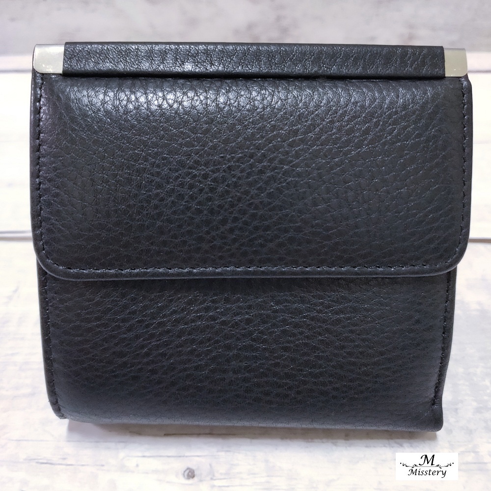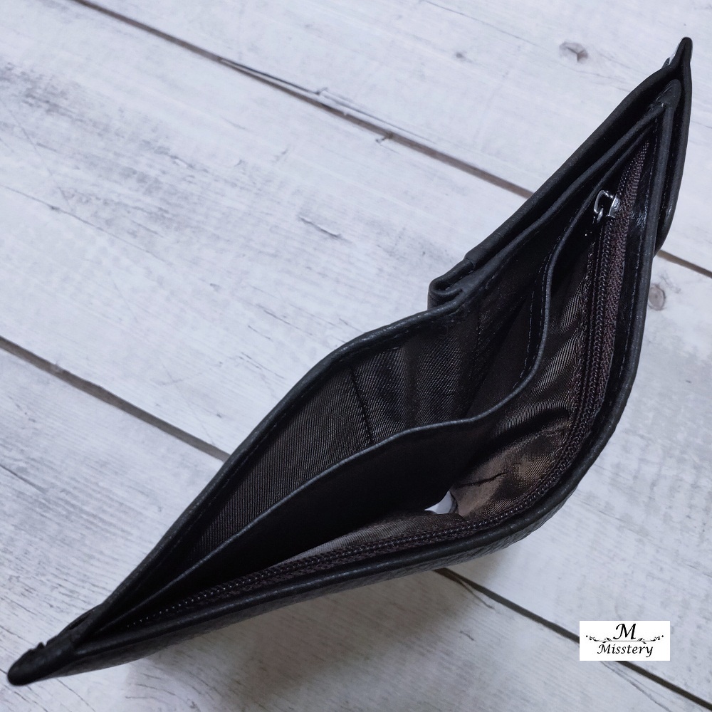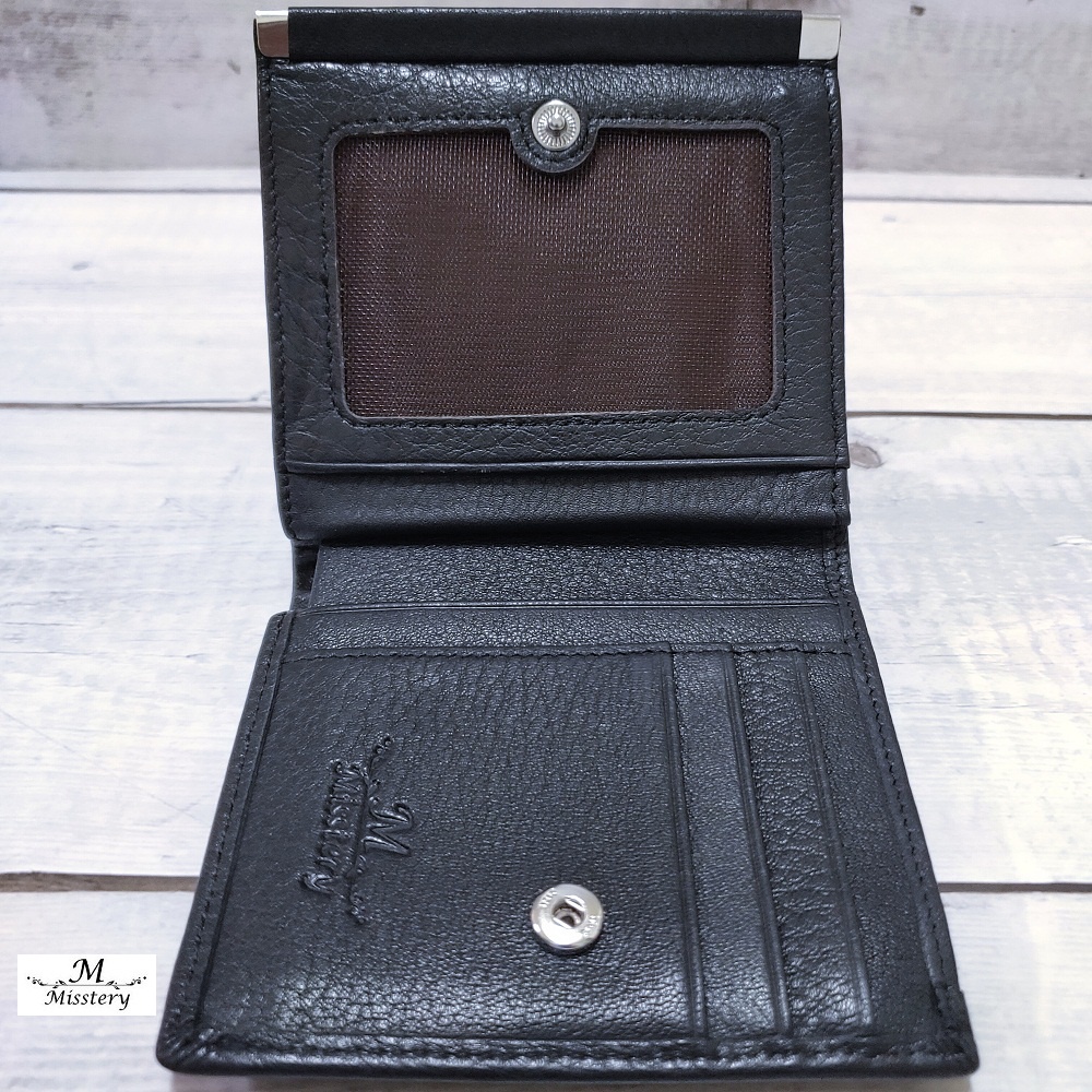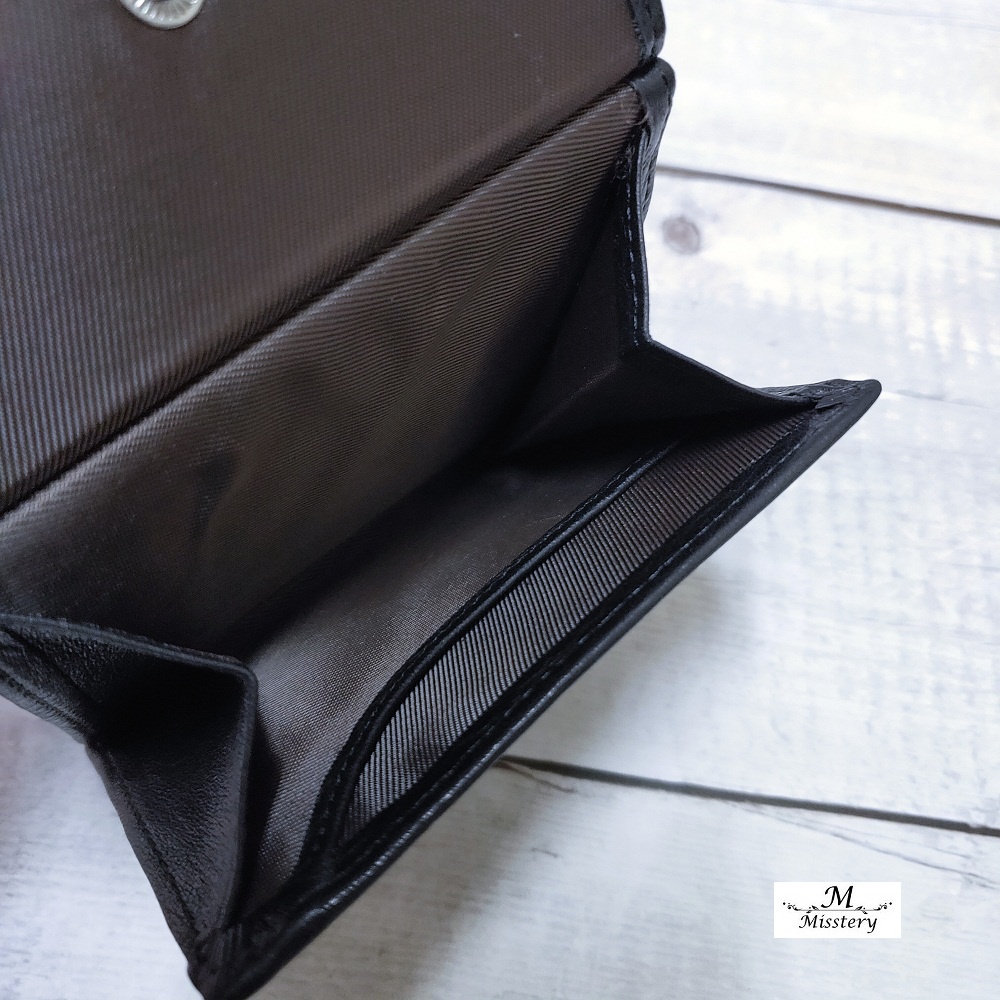 【Misstery】短夾進口牛皮對折壓扣+零錢袋短夾-黑A99-026BK