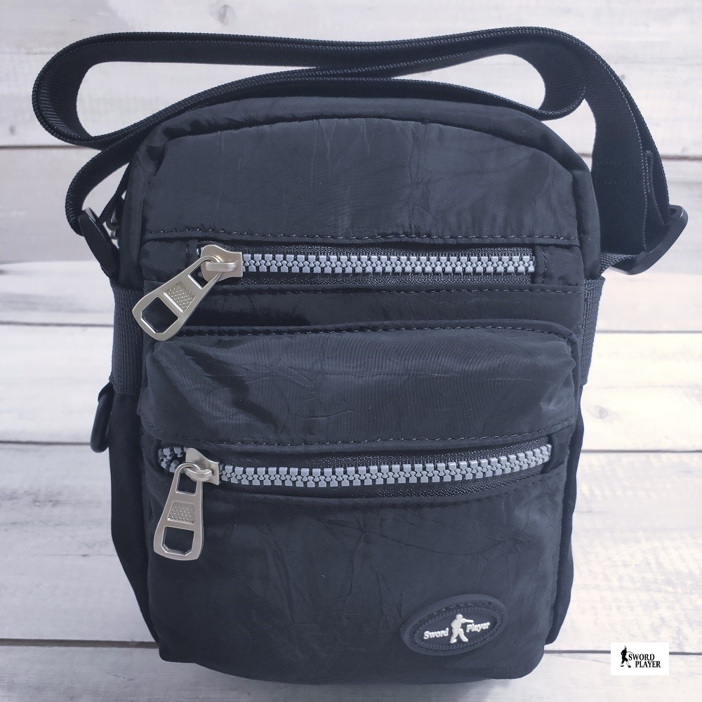 【SWORD PLAYER】斜背包防潑水面料前雙拉鏈小肩背斜背包-黑SP-N1604BK