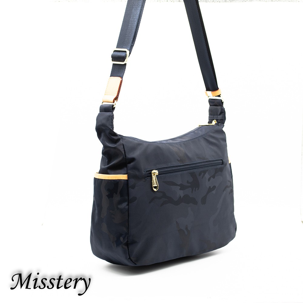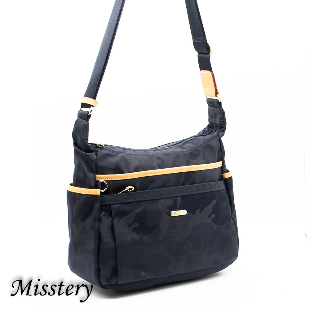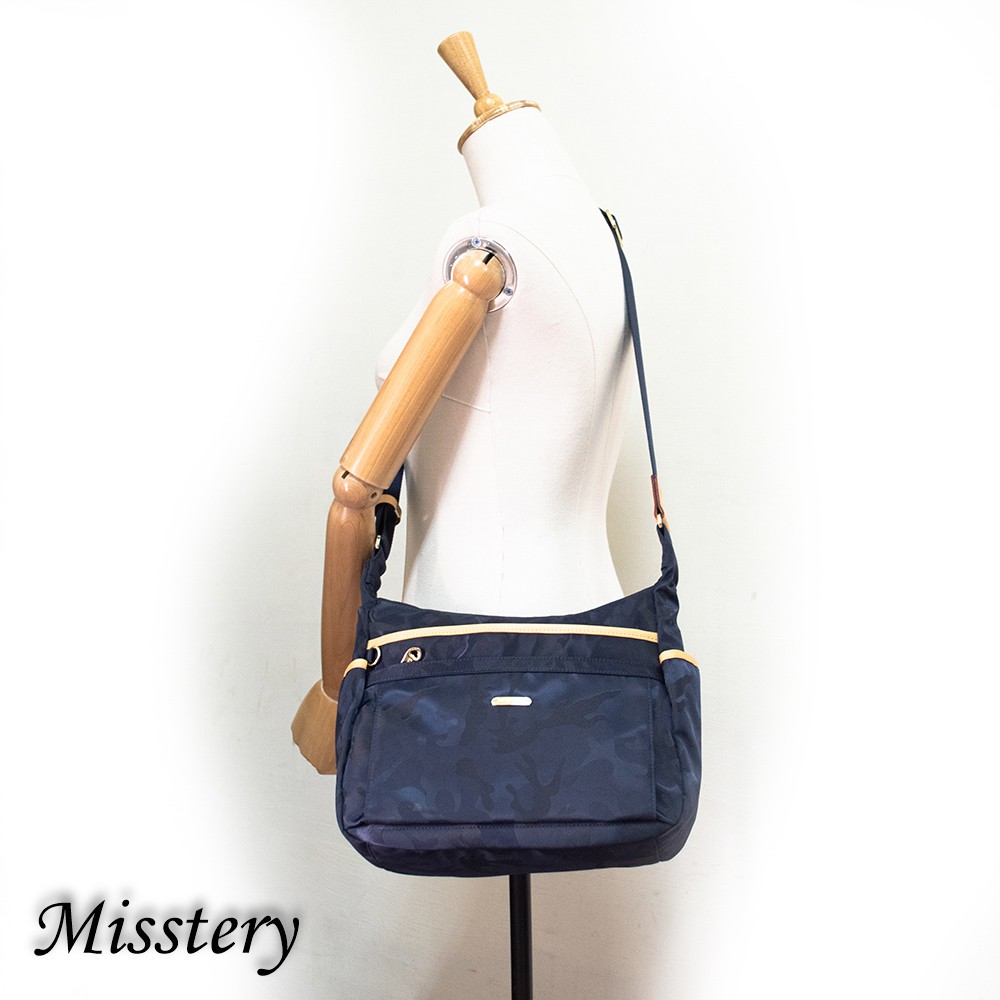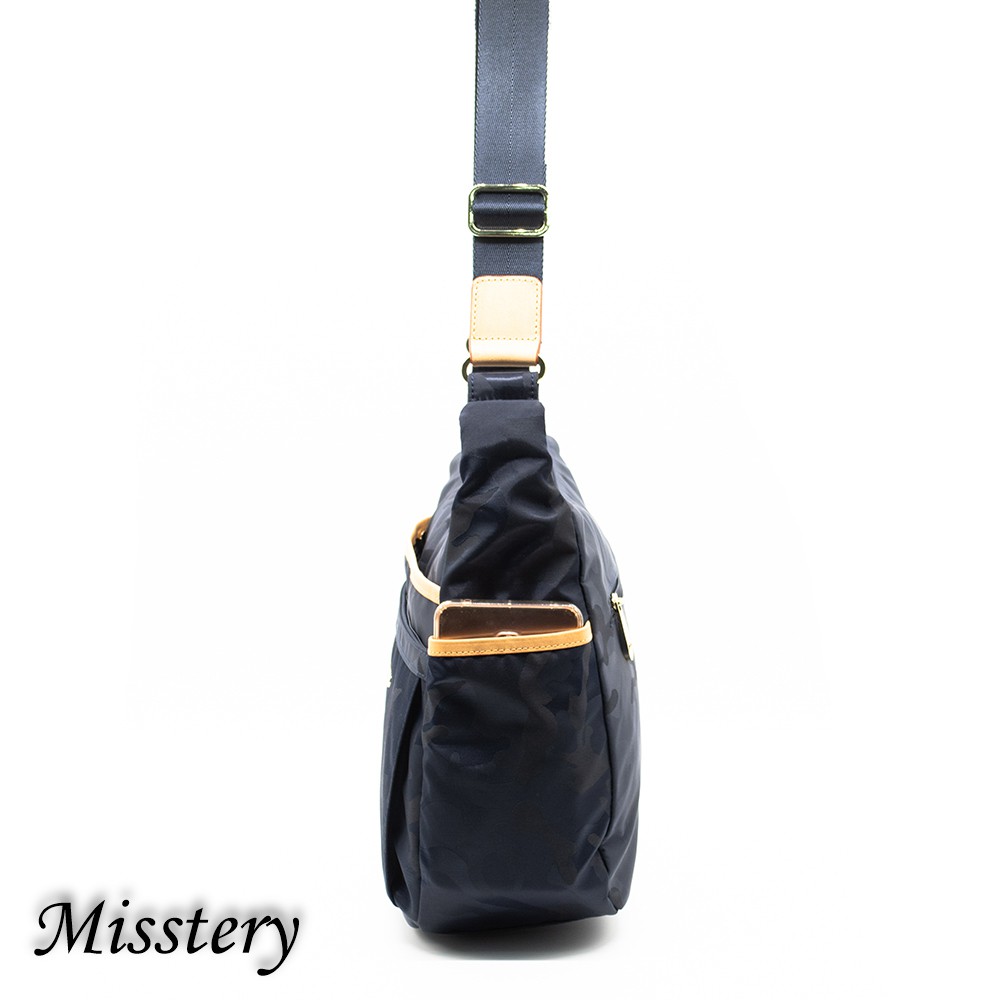 側肩背台灣防潑水面料搭配頂級植鞣革肩背包A88-057SBU (Misstery)