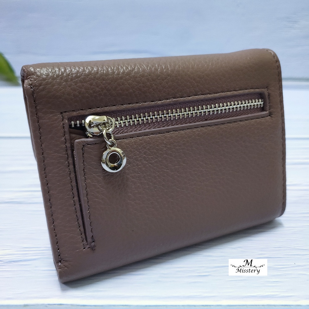 【Misstery】短夾進口牛皮壓扣+零錢袋短夾-紫A99-027PP