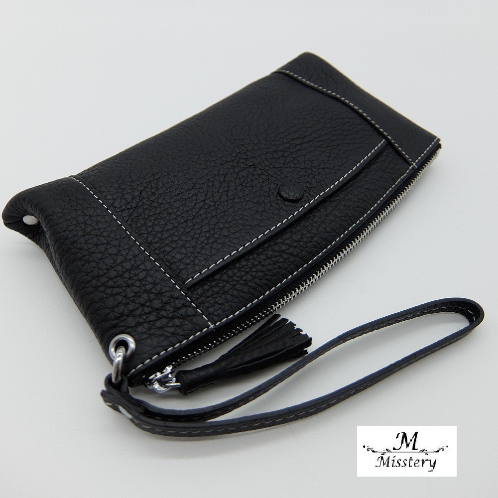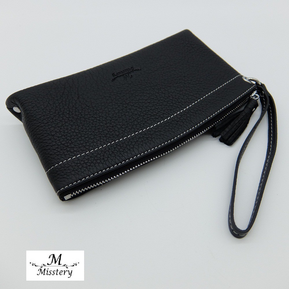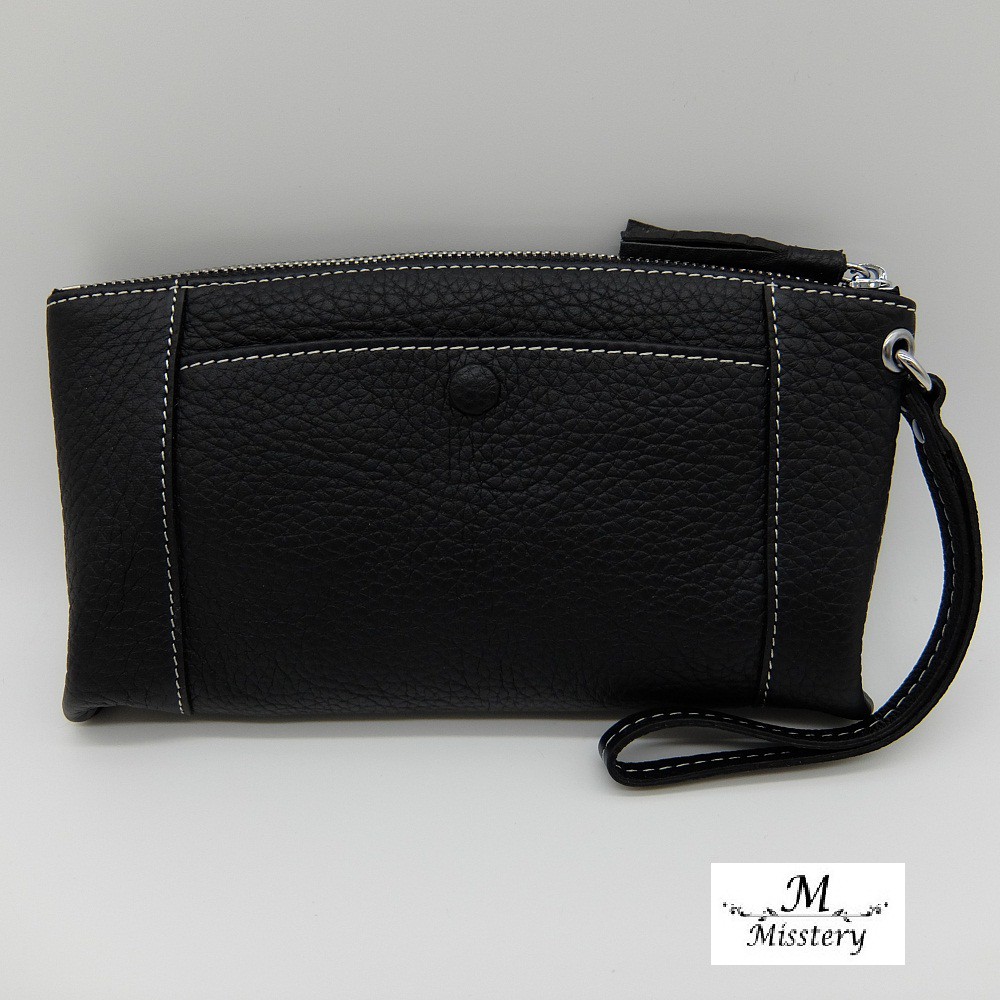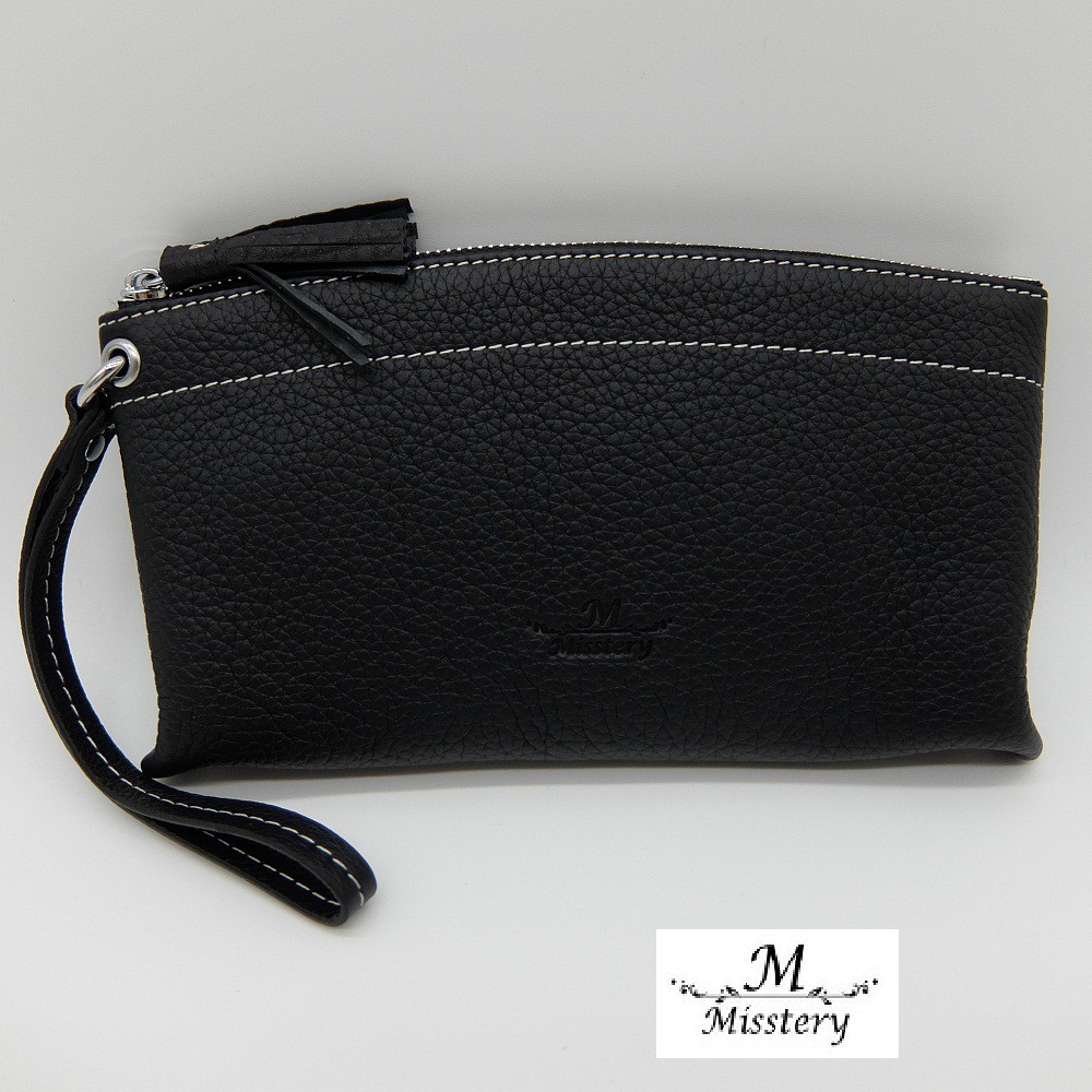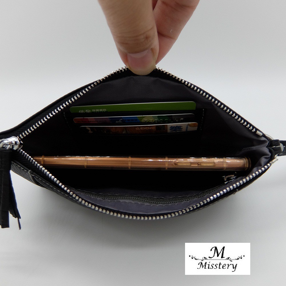 【Misstery】長夾進口牛皮鉚釘造型女用長夾-黑 A99-018BK