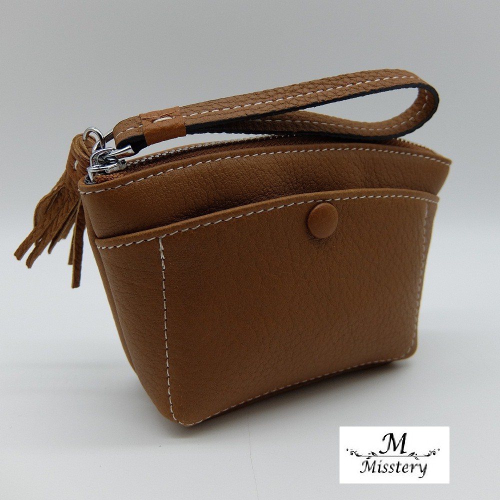 【Misstery】零錢包進口牛皮小巧零錢包-棕A99-016CM