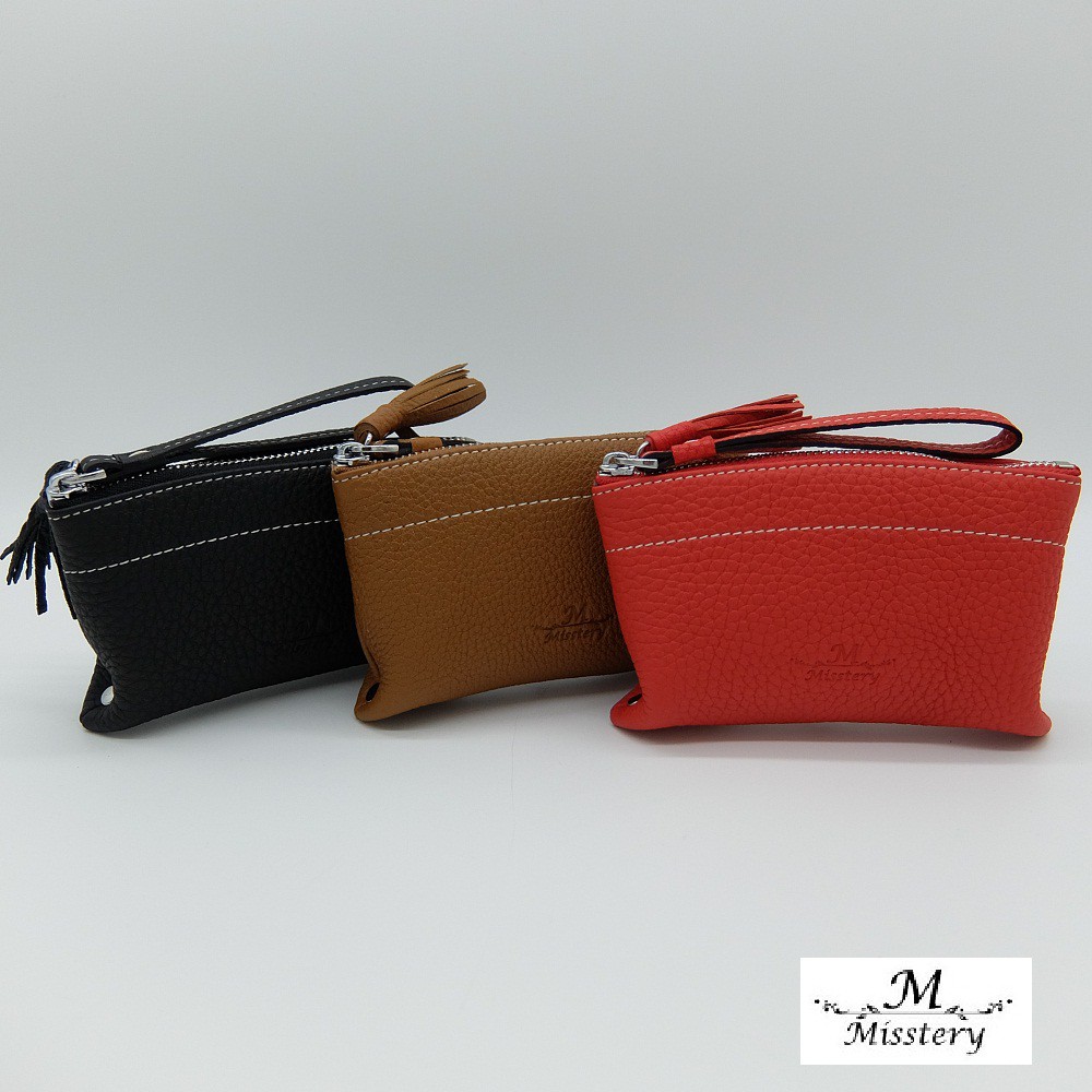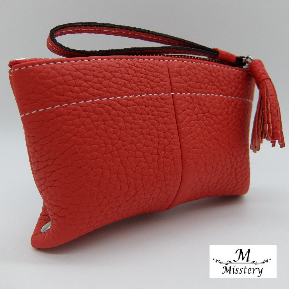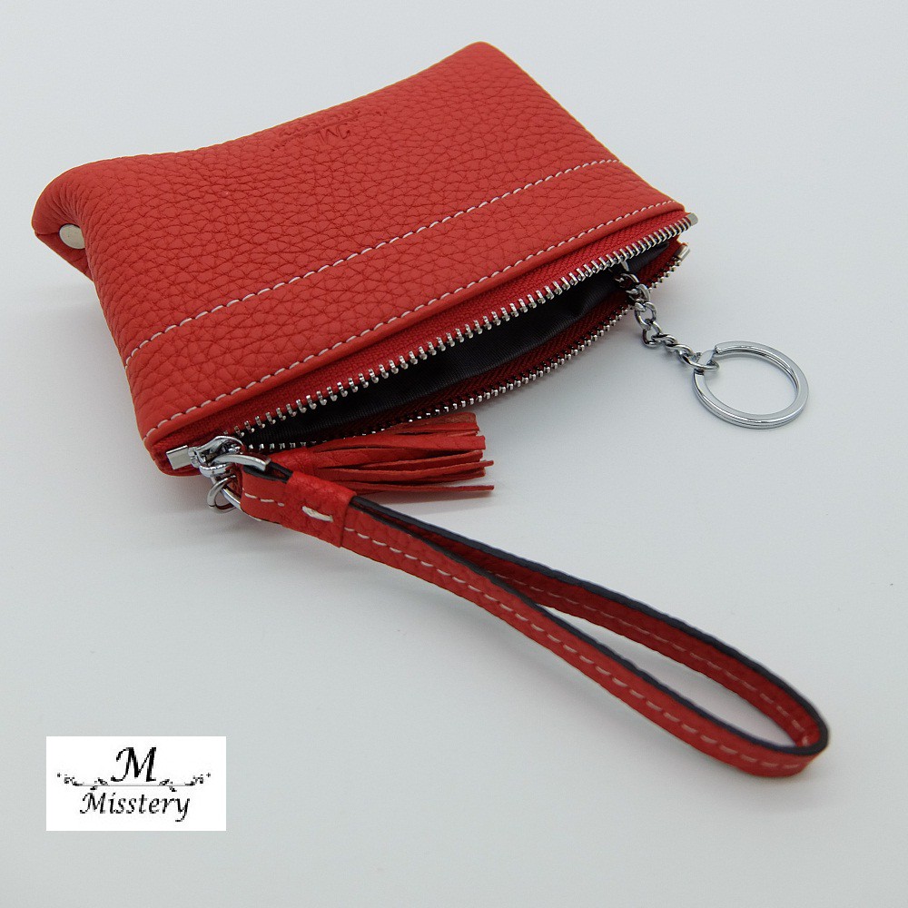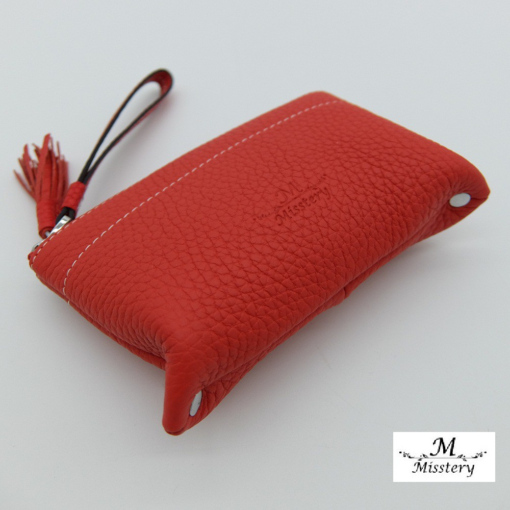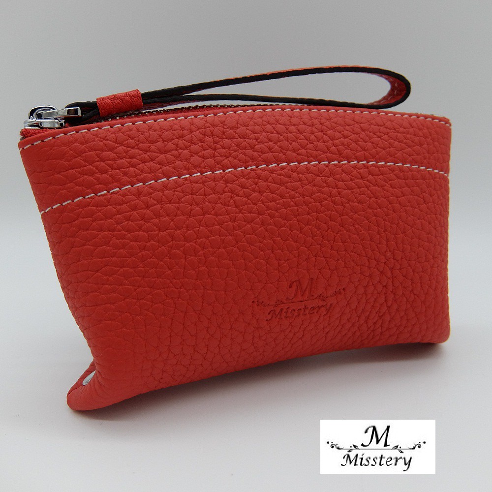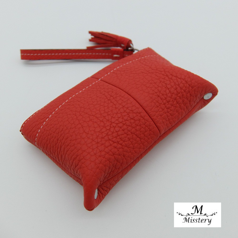 【Misstery】零錢包進口牛皮鉚釘造型小巧零錢包-橘紅A99-014CRD