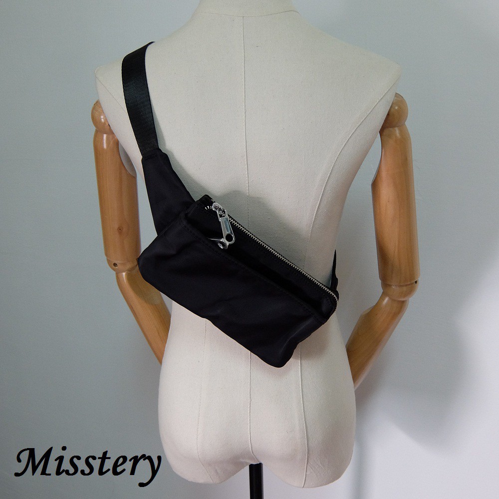 腰包防潑水面料休閒旅遊多格層拉鏈斜肩背/腰包 11006BK (Misstery)