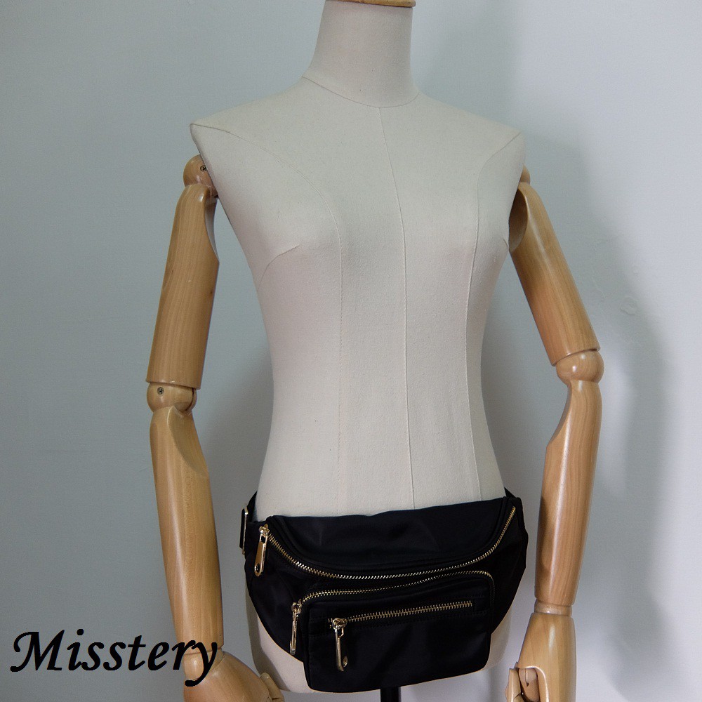 【Misstery】腰包防潑水面料休閒旅遊多格層拉鏈斜肩背/腰包 406BK (Misstery)