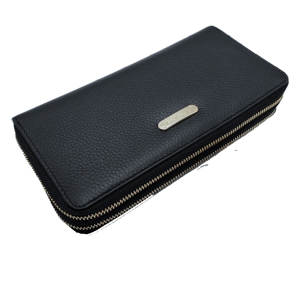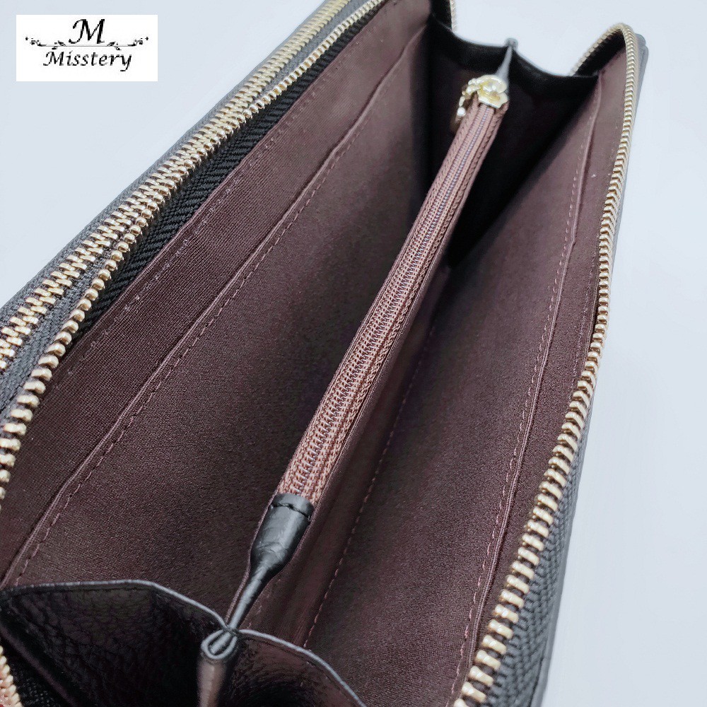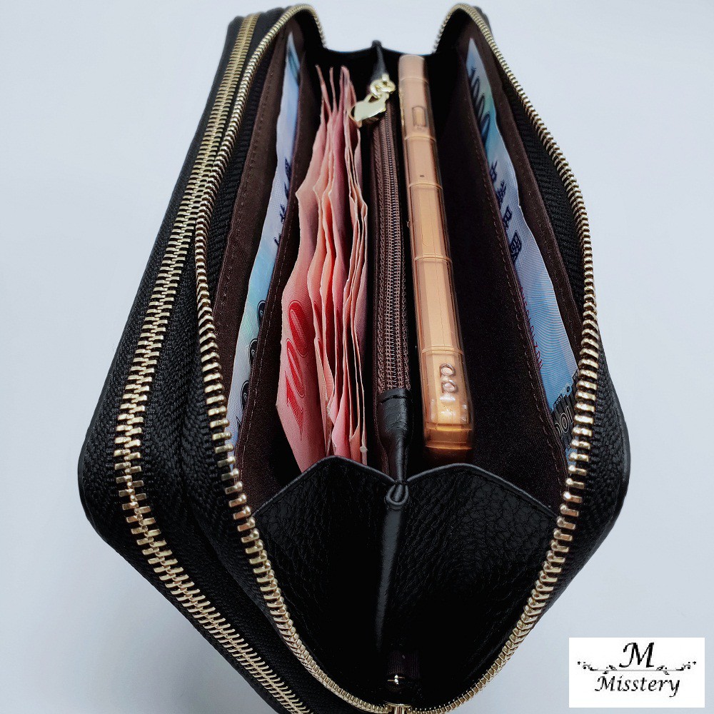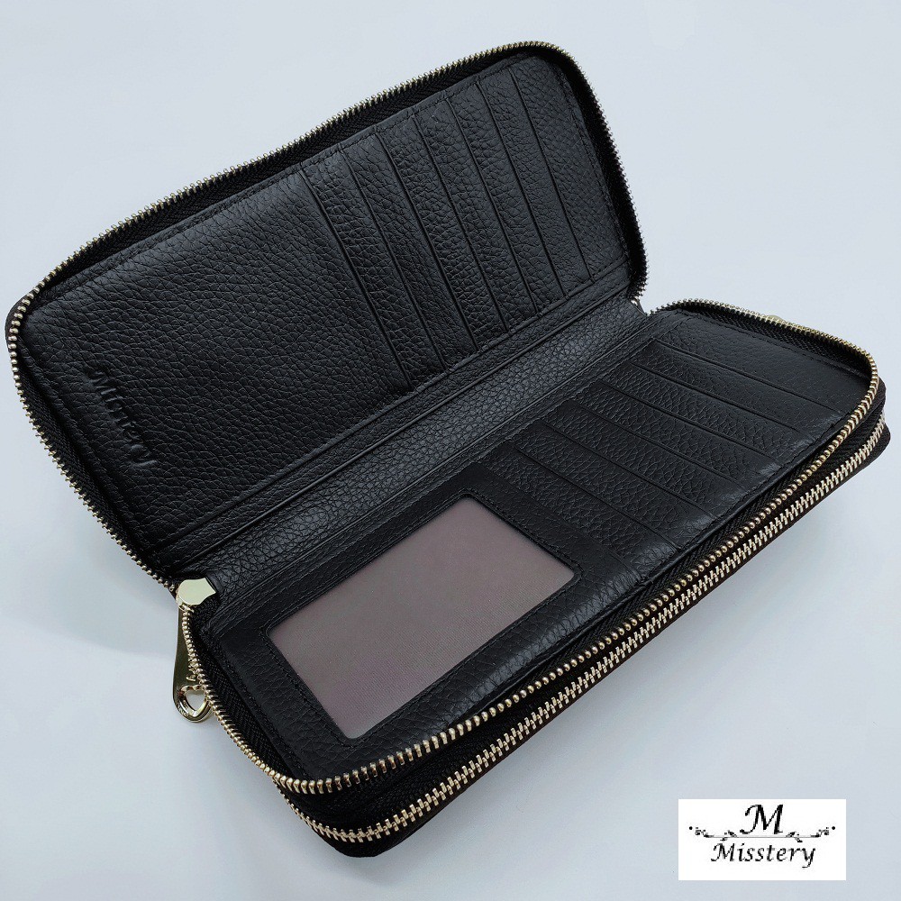 【Misstery】長夾進口牛皮雙層拉鍊女用長夾-黑 A99-808BK