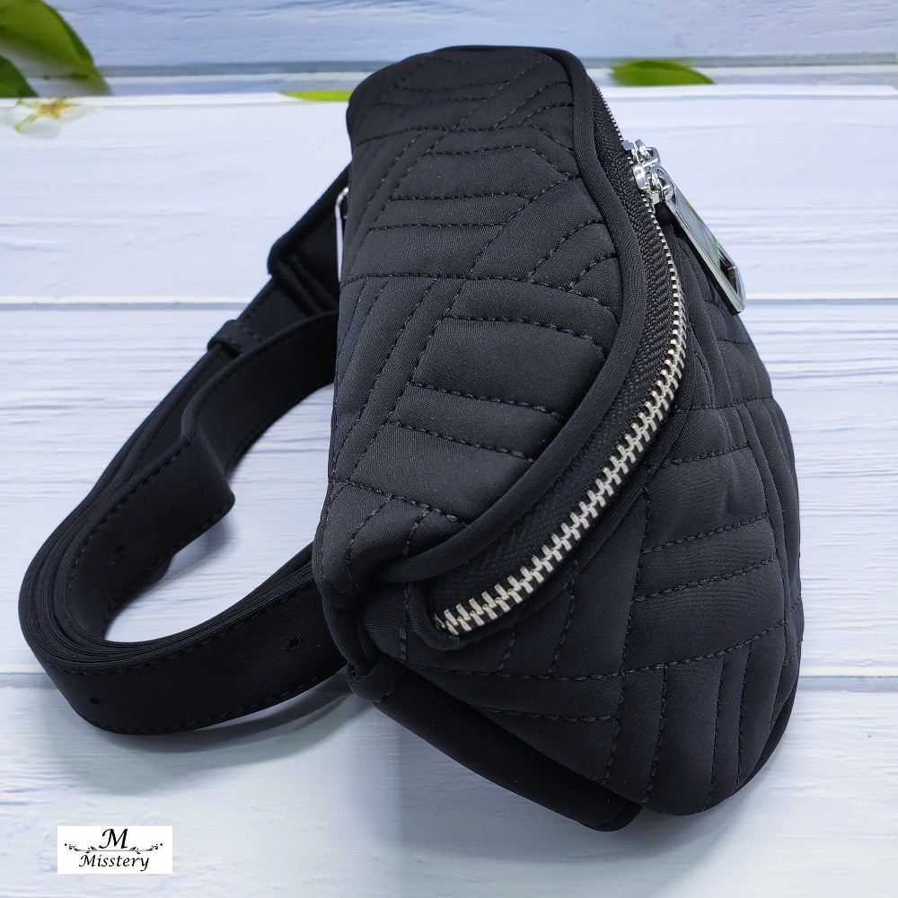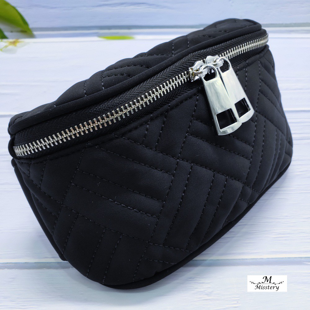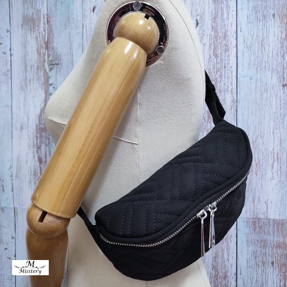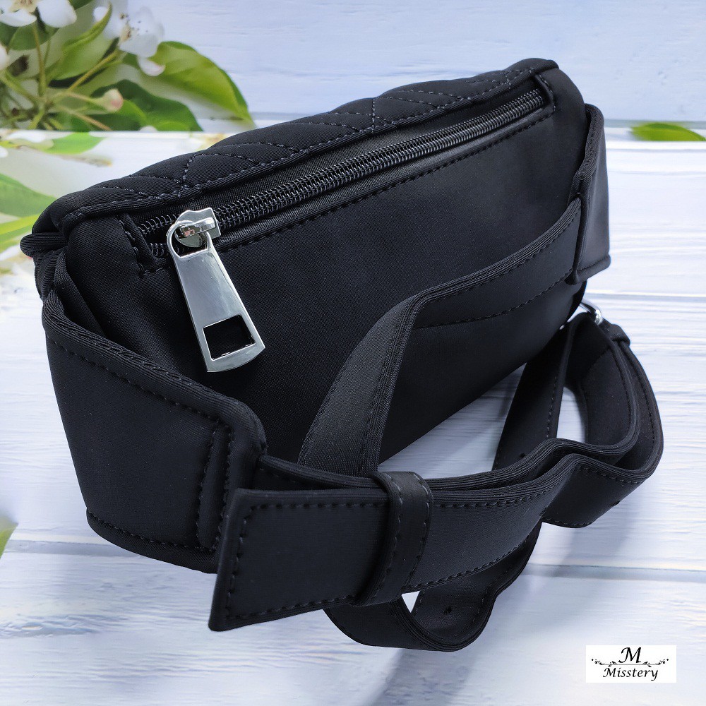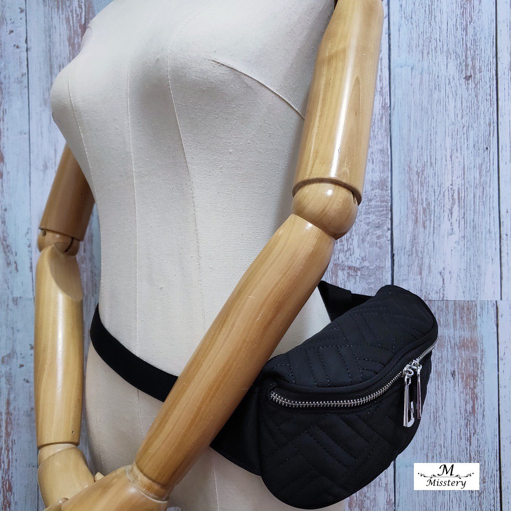 【Misstery】腰包休閒旅遊斜肩包-黑17095BK