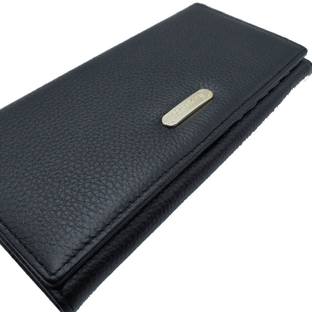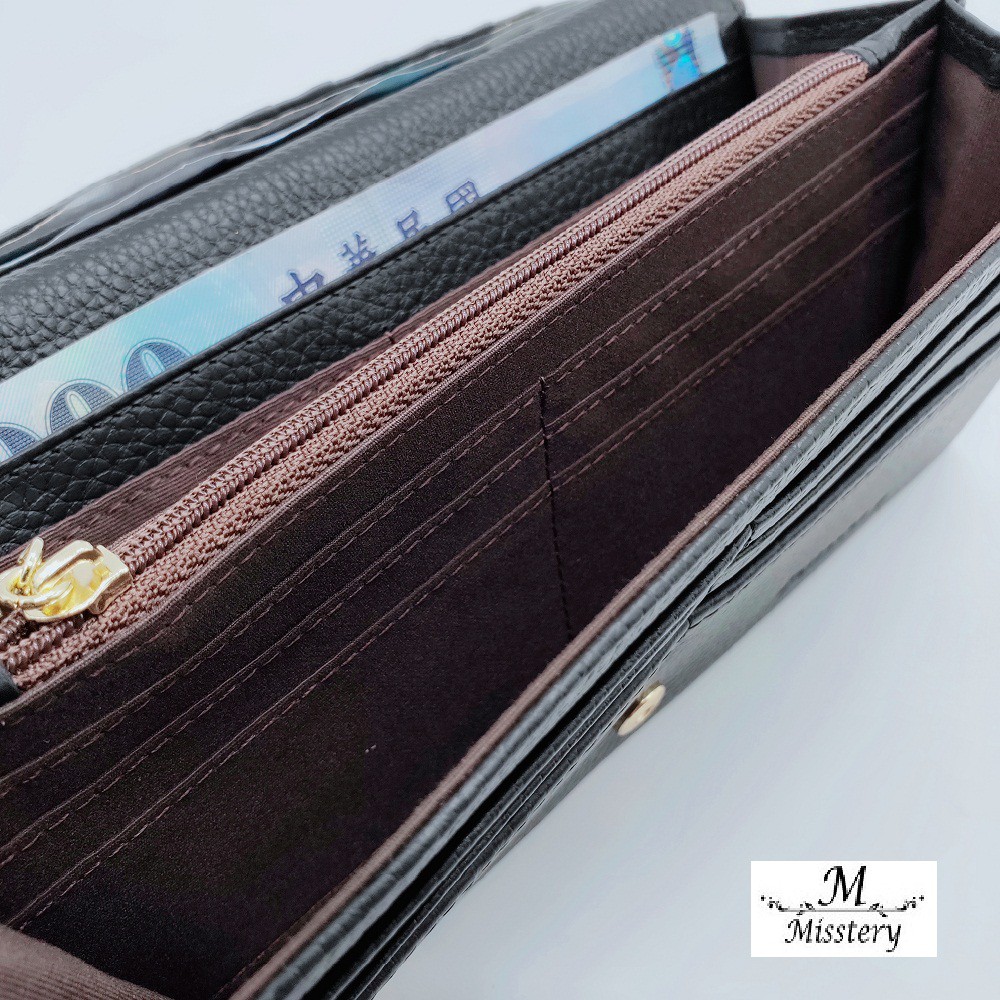 【Misstery】長夾進口牛皮上蓋式壓扣女用長夾-黑 A99-806BK