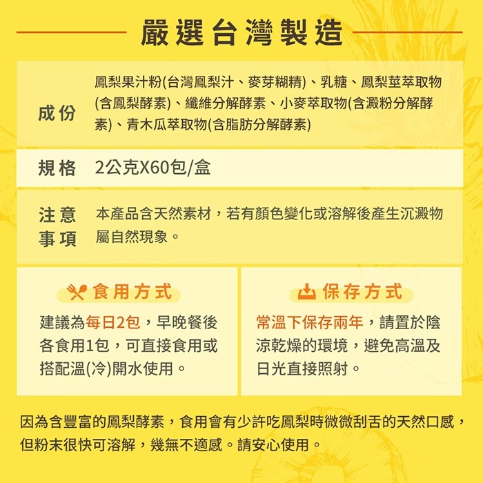 【陽光康喜】鳳梨酵素/顆粒粉末(60包/盒)-三盒優惠組 微熱山丘關係企業