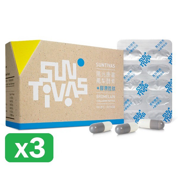 【陽光康喜】鳳梨酵素+膠原胜肽/複方膠囊(120顆/盒)-三盒優惠組 微熱山丘關係企業