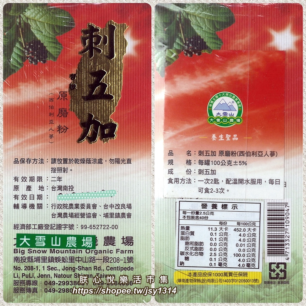【大雪山農場】刺五加原磨粉(100g/罐)