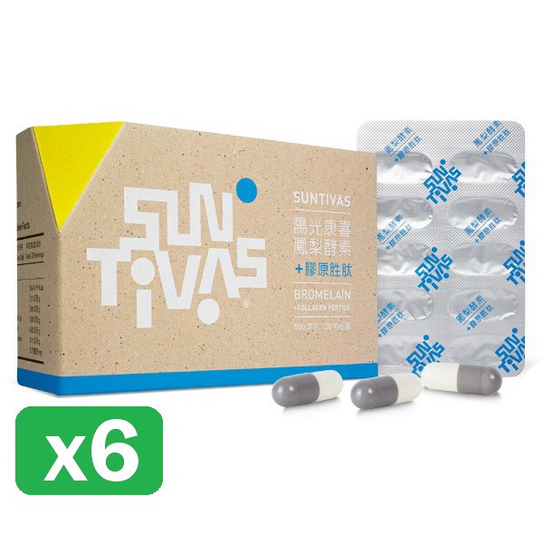 【陽光康喜】鳳梨酵素+膠原胜肽/複方膠囊(120顆/盒)-六盒優惠組 微熱山丘關係企業
