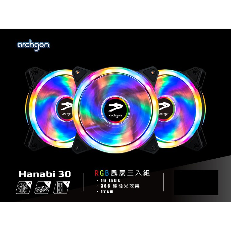 Archgon Hanabi 30 RGB電競風扇組 電腦風扇 RGB風扇 散熱器 (RGBCF13 ) (一組3入)