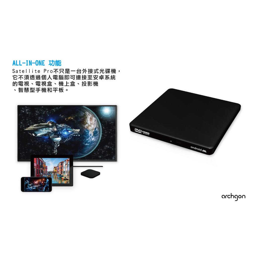 Archgon Satellite Pro 外接式光碟機 for Android DVD/CD(MD-9106-U2P)