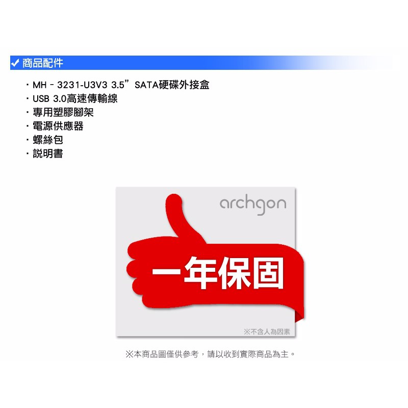 Archgon USB3.0 3.5吋 SATA 鋁合金硬碟 外接盒 (MH-3231-U3V3)-加碼送好禮