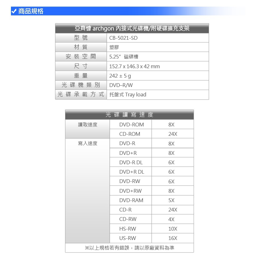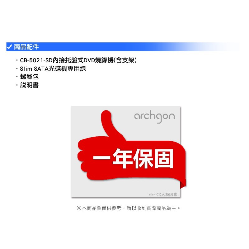 Archgon 8X 內接DVD / CD燒錄 光碟機 桌上型電腦 適用桌機 (CB-5021-SD) 加碼送好禮
