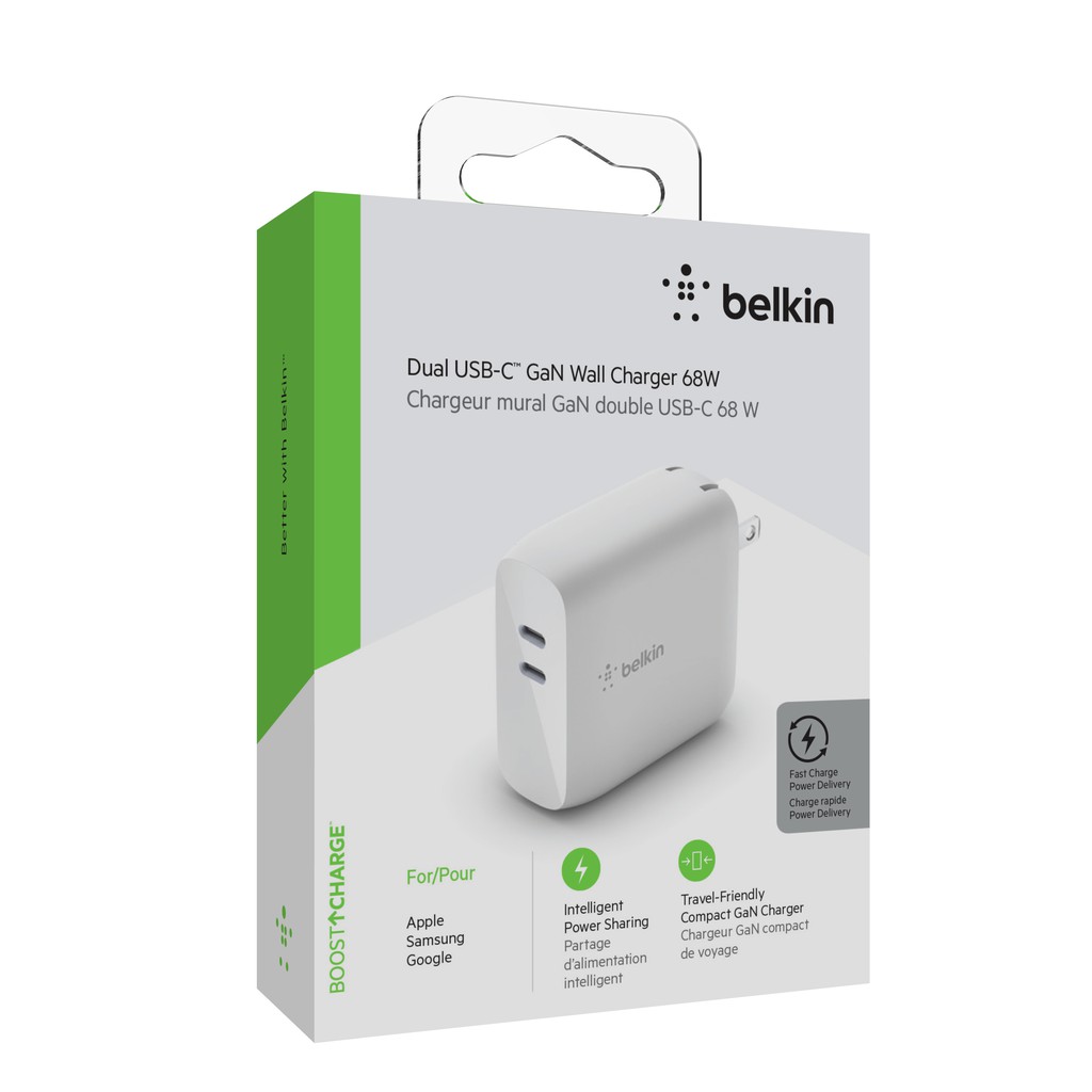 belkin 68W充電器 氮化鎵 GaN 雙孔USB-C 台灣總代理 2年保固【地標網通】