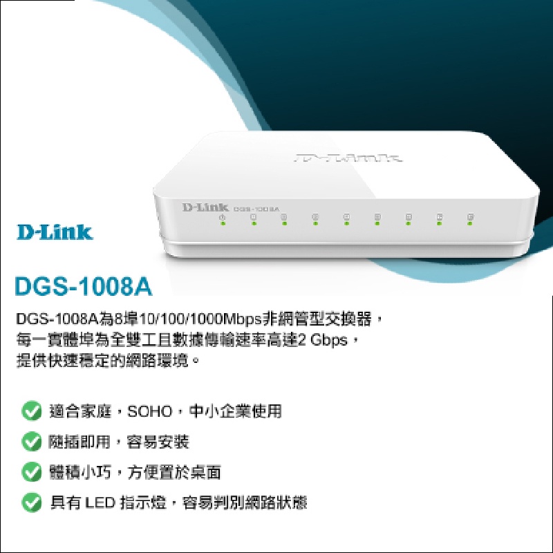 D-LINK DGS-1008A EEE節能桌上型網路交換器 外接式電源供應器 台灣製造 DL050