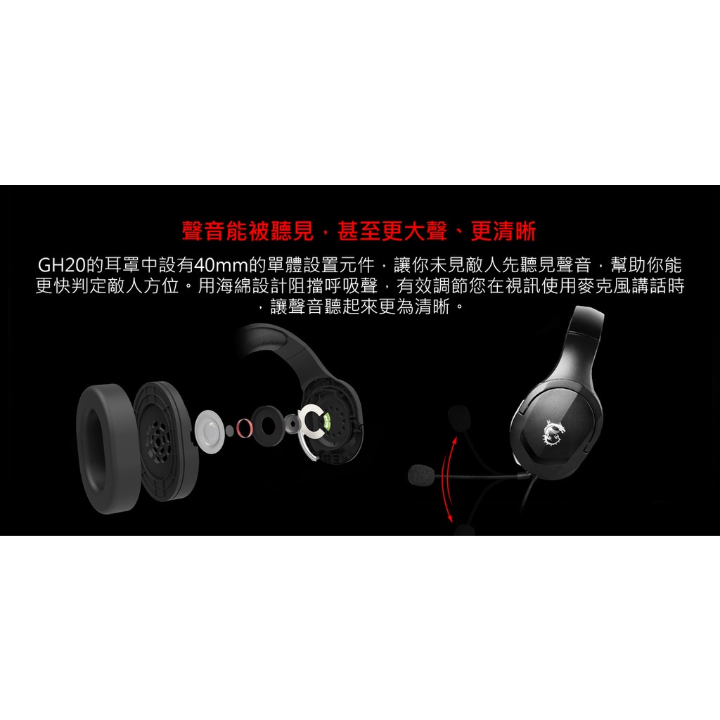 MSI 微星 Immerse GH20 耳罩式電競耳麥 耳罩式 電競 耳機 輕量化 麥克風 有線耳機 MSI01