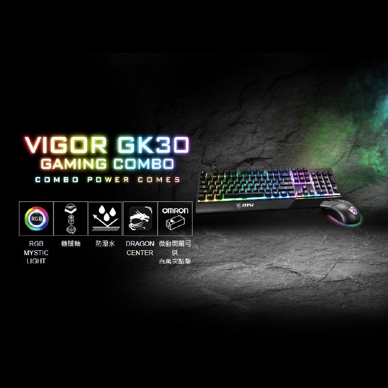 MSI 微星 Vigor GK30 COMBO TC 電競鍵盤滑鼠組 RGB 電競滑鼠 電競鍵盤 防潑水 MSI13