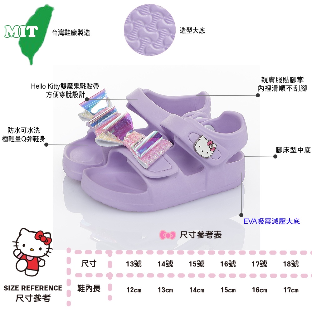 Hello Kitty童鞋 12-17cm 輕量減壓吸震腳床型拖鞋涼鞋 粉.紫.水(聖荃官方旗艦店)