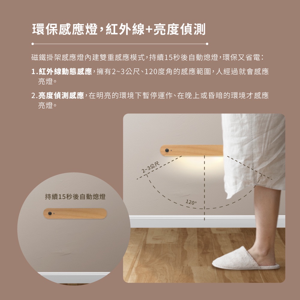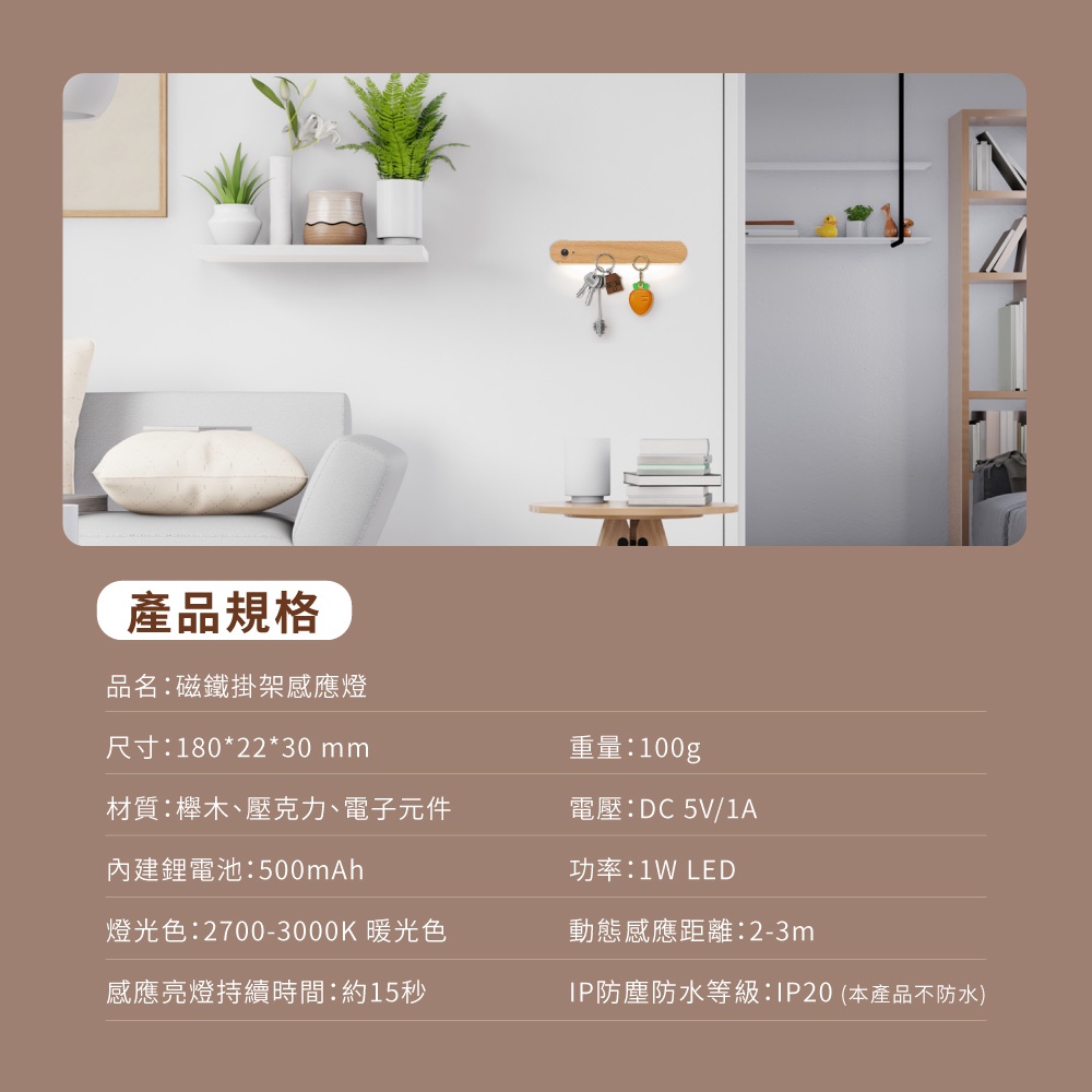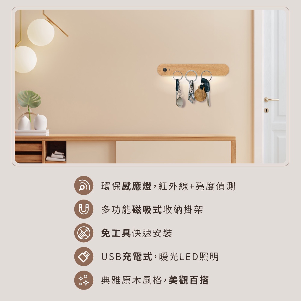 磁鐵掛架感應燈 磁吸式收納掛架 USB充電式 紅外線/亮度雙感應 免工具安裝
