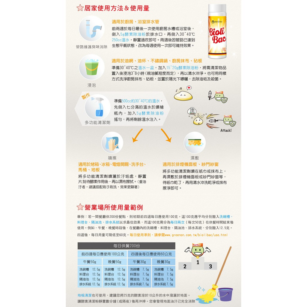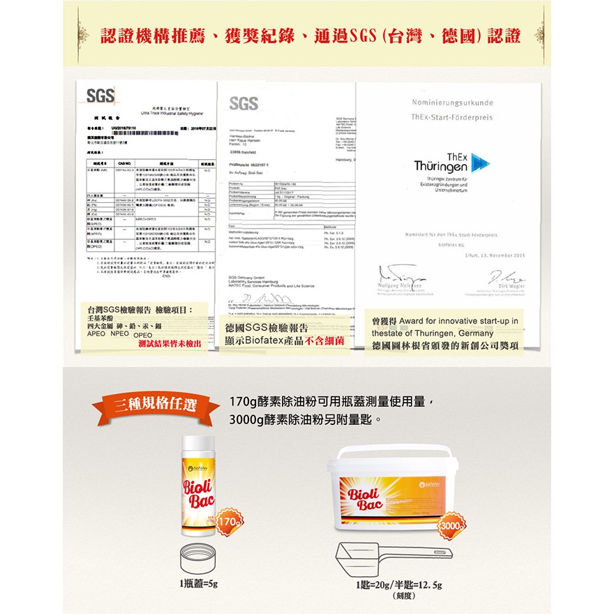 德國Biofatex BioliBac得立潔神奇酵素除油粉 - 170g 5入組 - 截油槽清潔很EASY