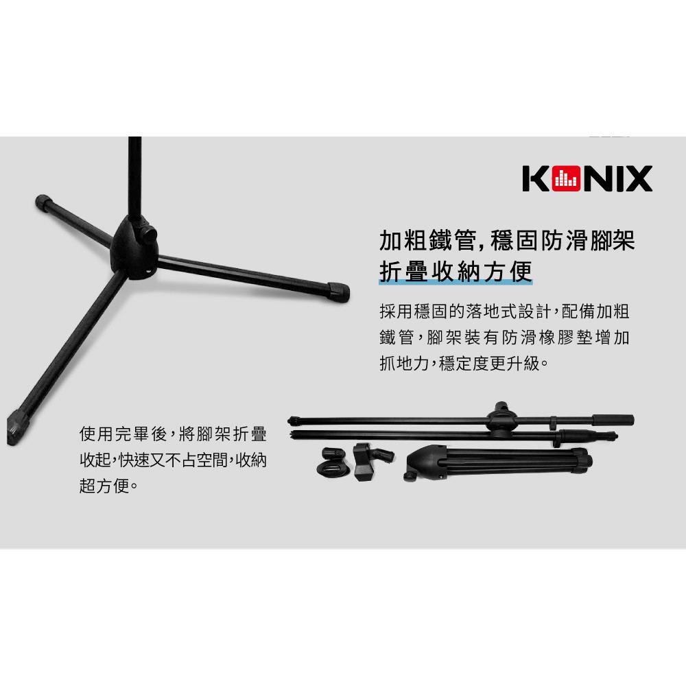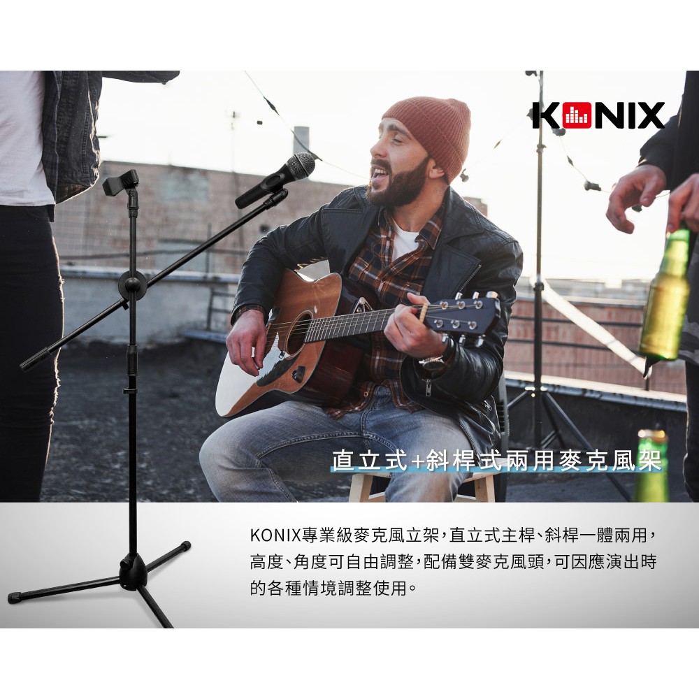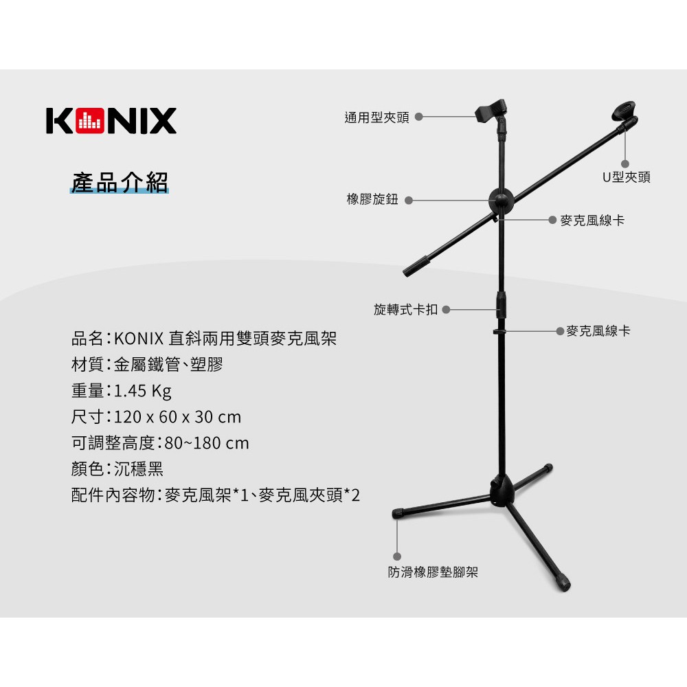 【KONIX】 直斜兩用雙頭麥克風架 3段式升降 360度調整 穩固防滑腳架