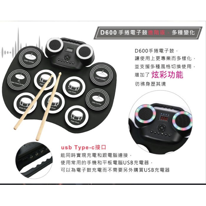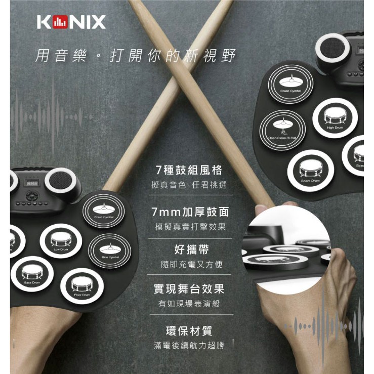 【KONIX】D600手捲電子鼓 USB充電型 雙喇叭重低音效