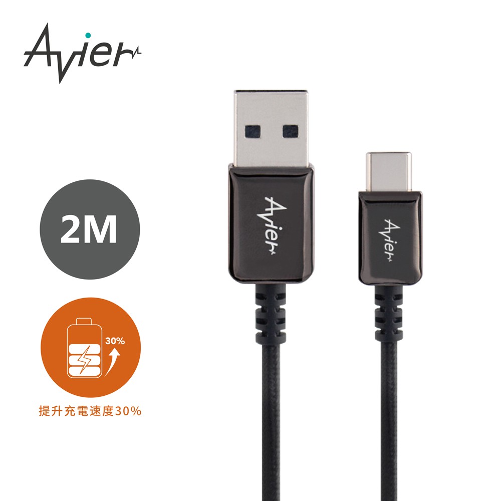 【Avier】CLASSIC USB A to Type-C 編織高速充電傳輸線 2M 耀岩黑
