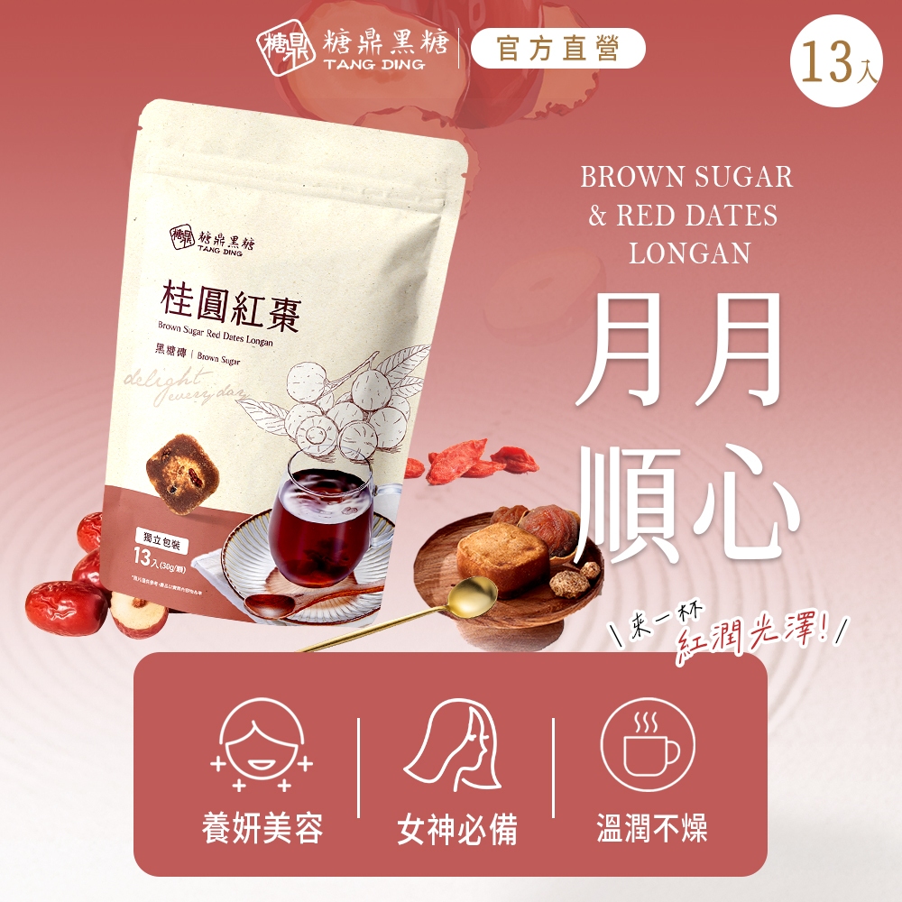 【糖鼎黑糖】 桂圓紅棗-黑糖磚-大包13顆(30g/顆)|藏不住的紅潤光澤,妳的秘密武器|官方旗艦店 黑糖 黑糖磚