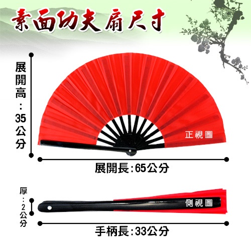 【輝武】武術用品高雄館-全竹骨易開合-黑骨素面紅太極扇(35CM長)
