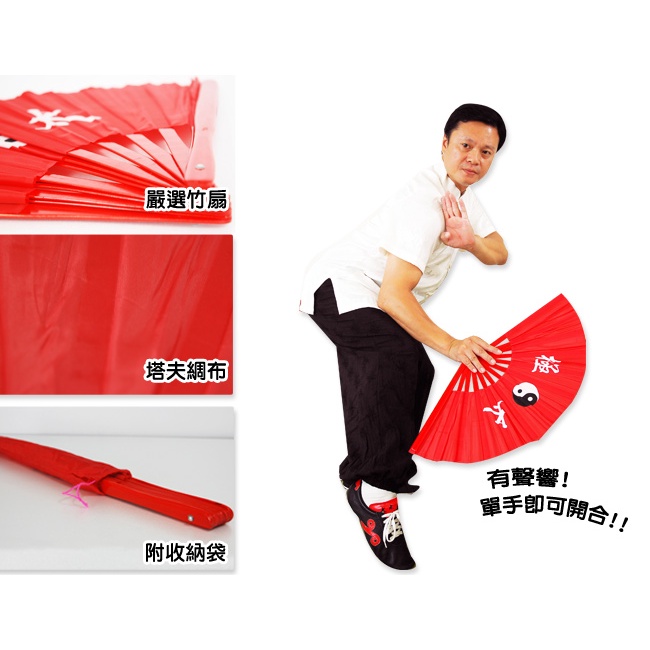 【輝武】武術用品-全竹骨易開合-太極功夫扇(35CM長)-(多款花色/入數可選)