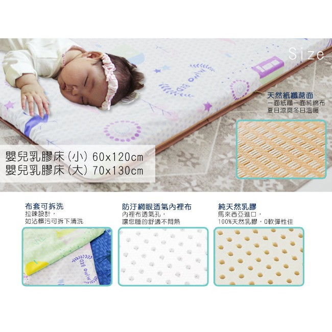 【米夢家居】 夢想家園-冬夏兩用馬來西亞進口100%天然乳膠嬰兒床墊-多款花色可選