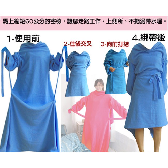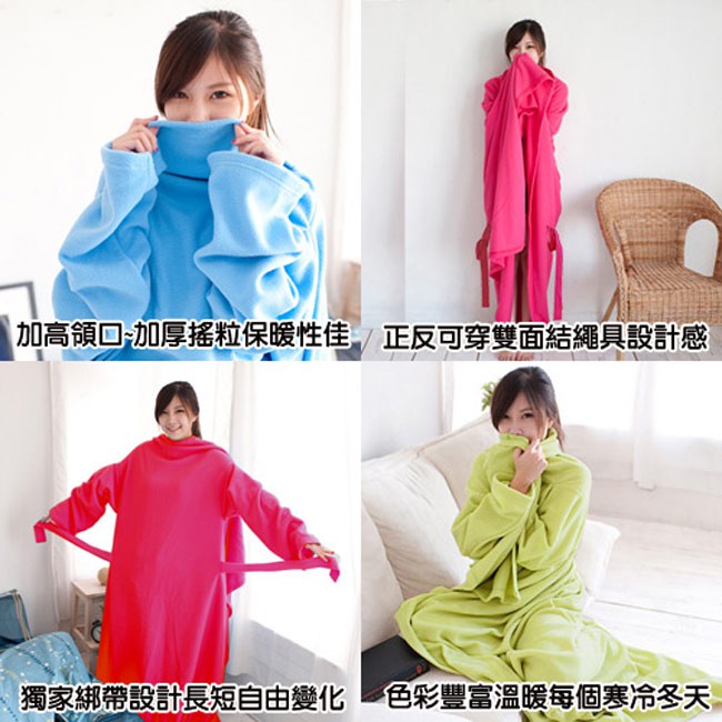 【米夢家居】100%台灣製造獨家設計~超保暖綁帶式袖毯(繽紛藍)