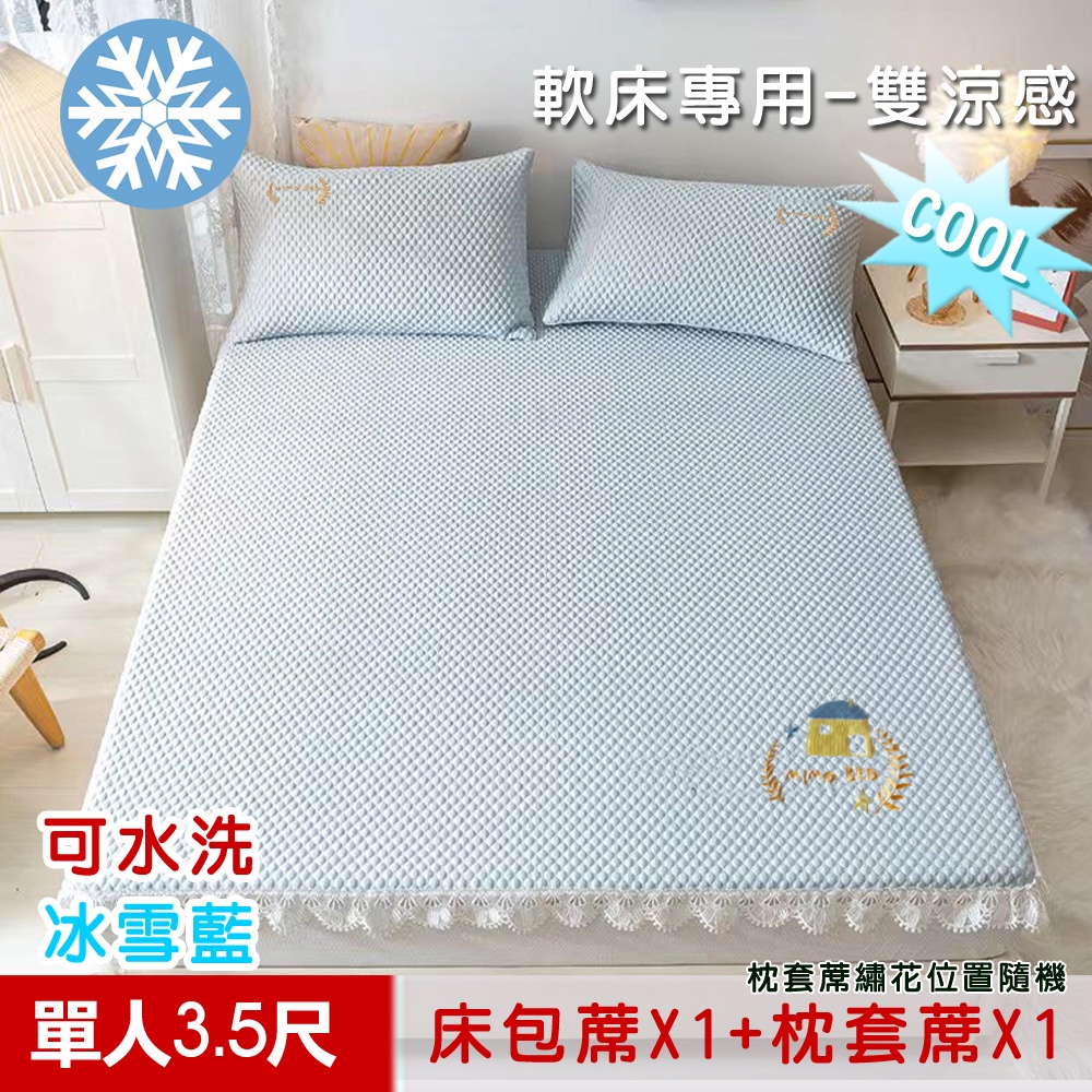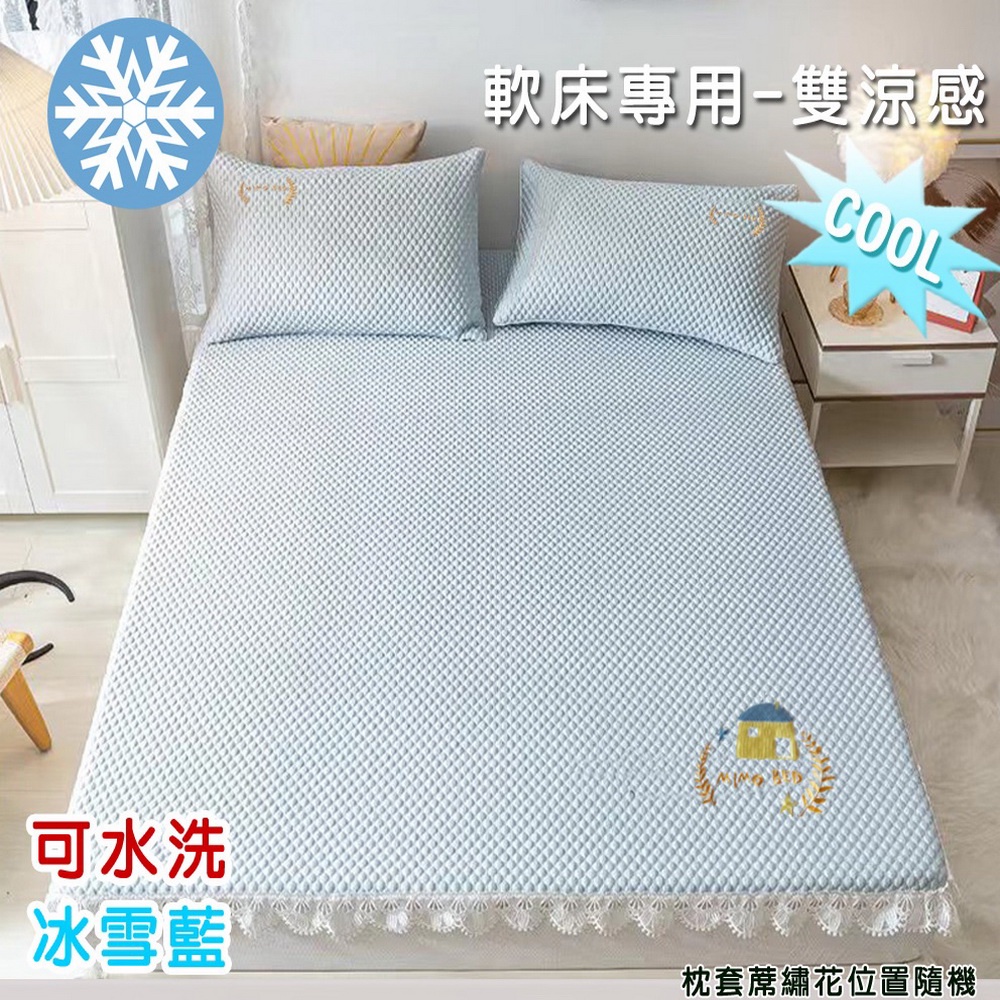 【米夢家居】軟床專用-可機洗好收納雙涼感3D豆豆釋壓冰紗床包涼蓆(多款花色/尺寸可選)