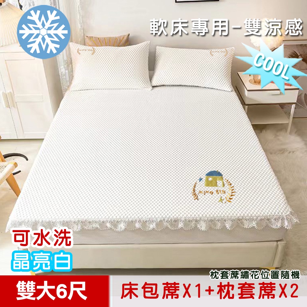 【米夢家居】軟床專用-可機洗好收納雙涼感3D豆豆釋壓冰紗床包涼蓆-晶亮白
