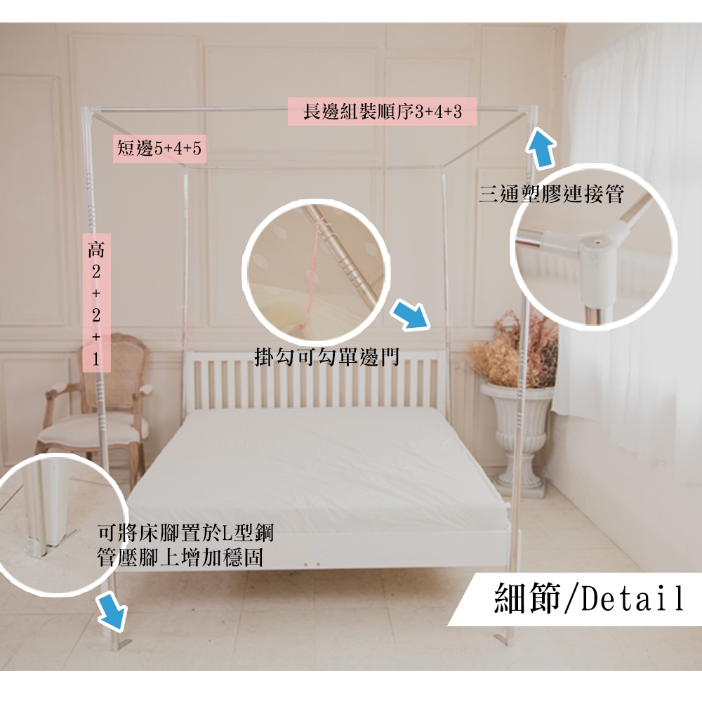【凱蕾絲帝】蚊帳配件-方型不銹鋼管支架(多款尺寸可選)