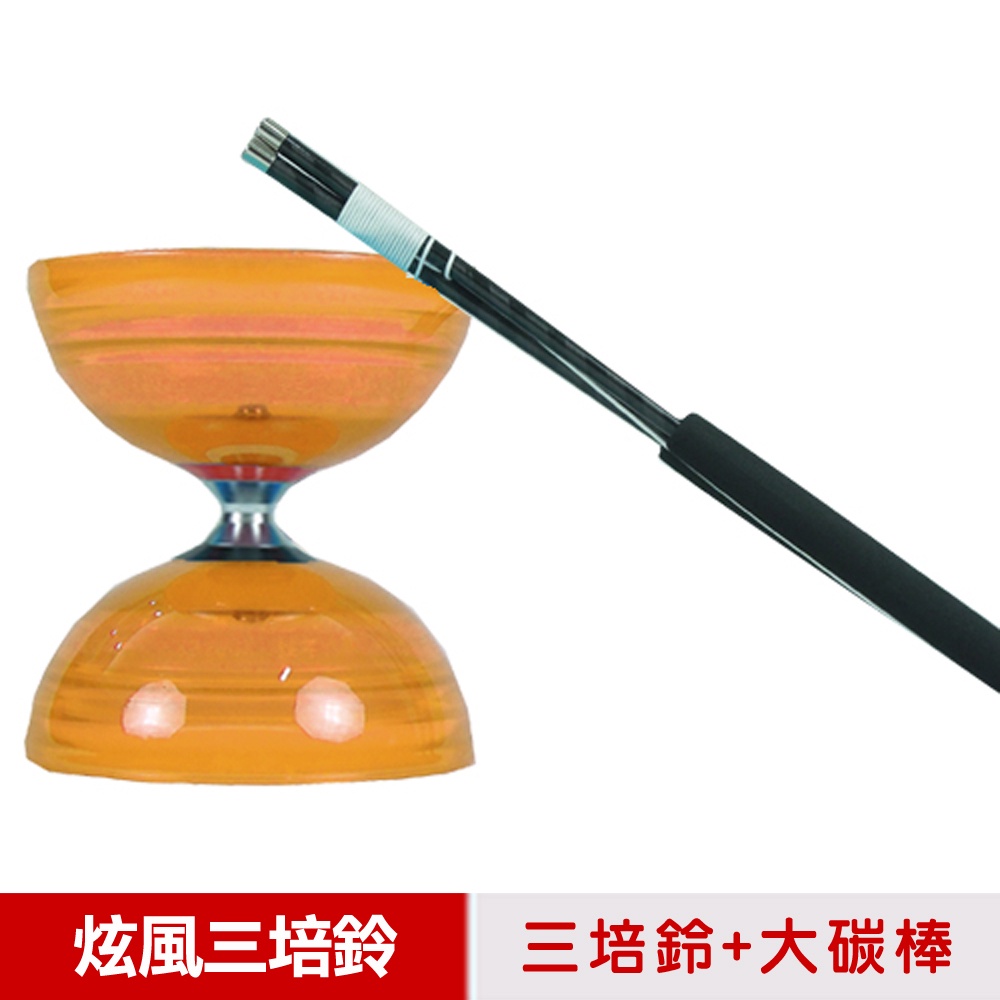 【三鈴SUNDIA】台灣製造-炫風長軸三培鈴橘色(附35cm大碳棍、扯鈴專用繩)