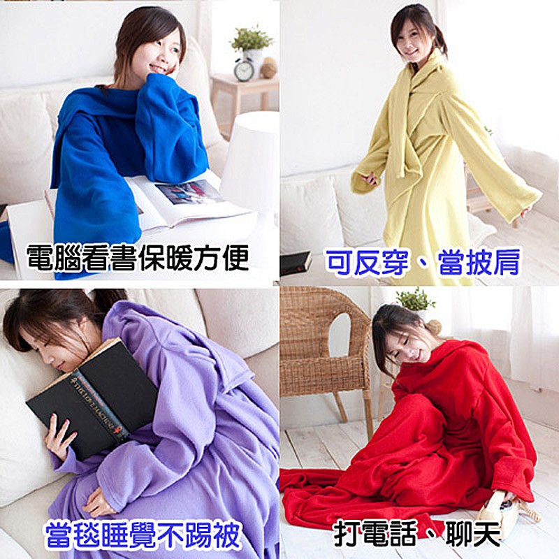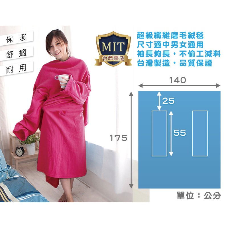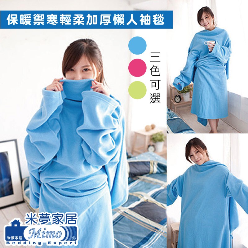 【米夢家居】100%台灣製造-保暖禦寒輕柔加厚懶人袖毯(淺藍)