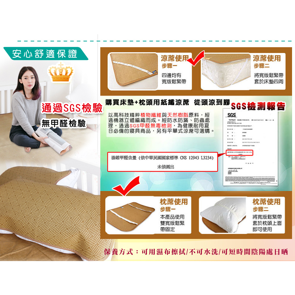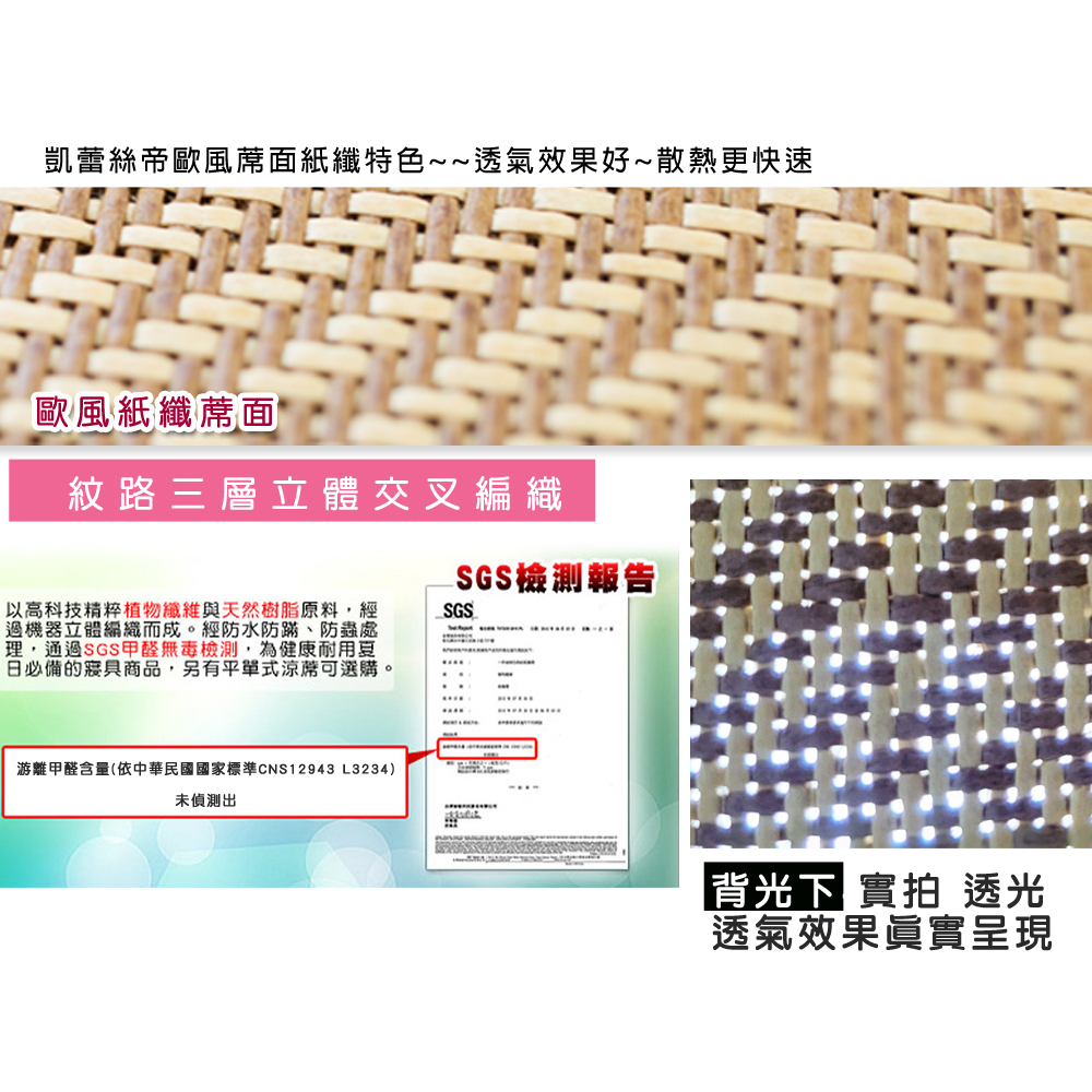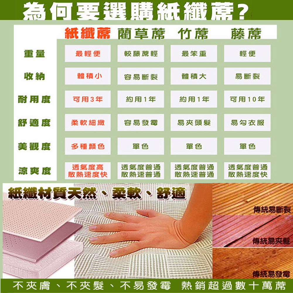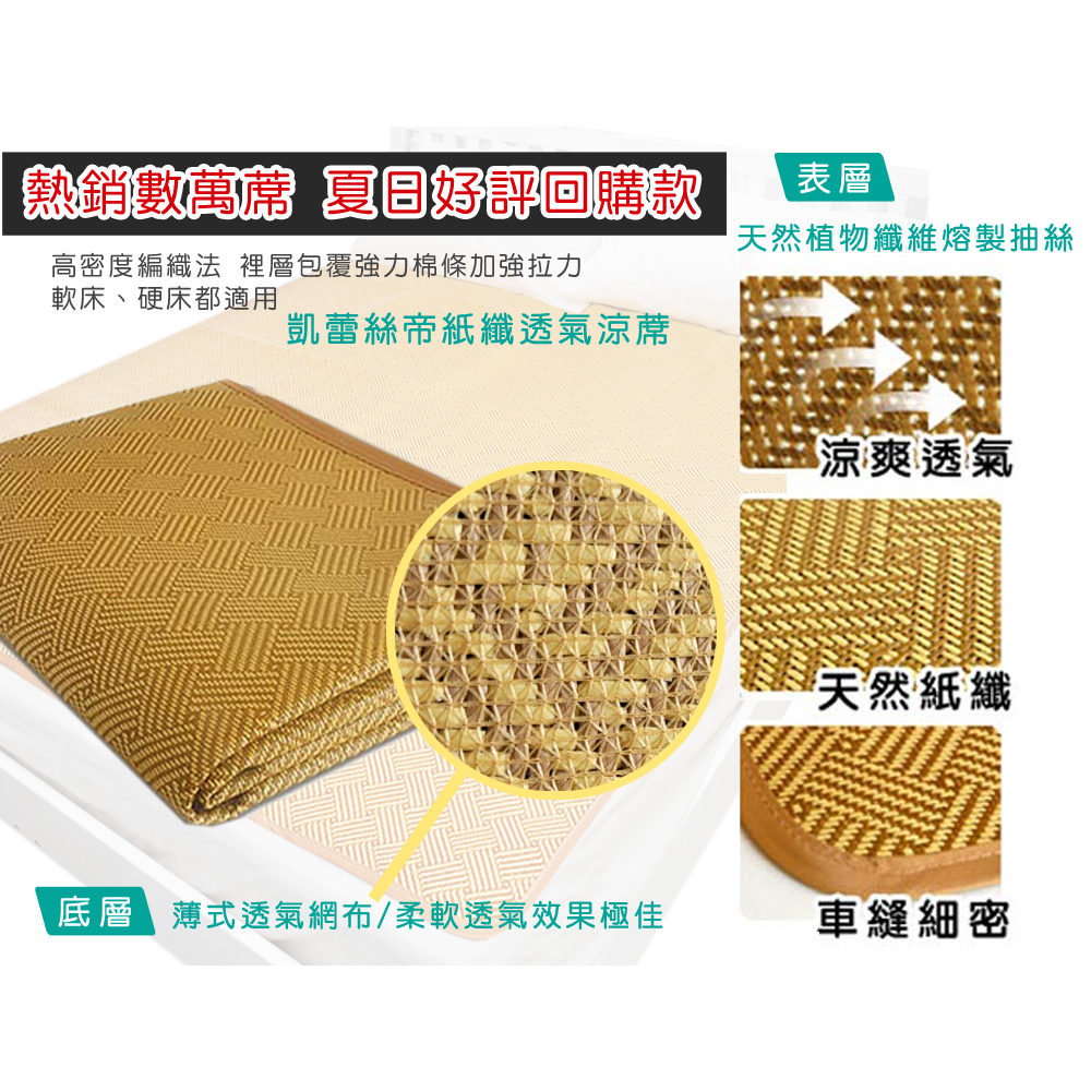 【凱蕾絲帝】台灣製造~軟床專用透氣紙纖涼蓆組(蓆+枕)(多款尺寸可選)