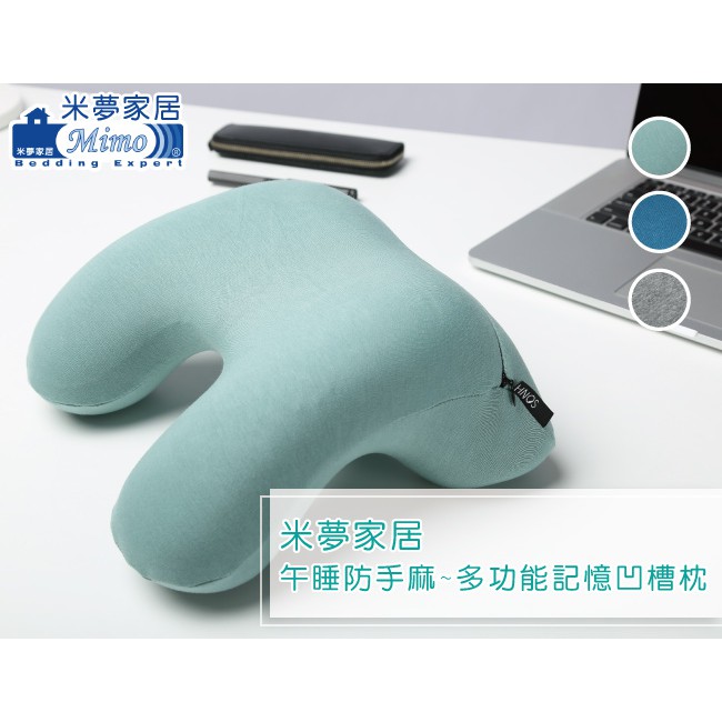 【米夢家居】午睡防手麻-多功能記憶趴睡枕/飛機旅行車用護頸凹槽枕-綠