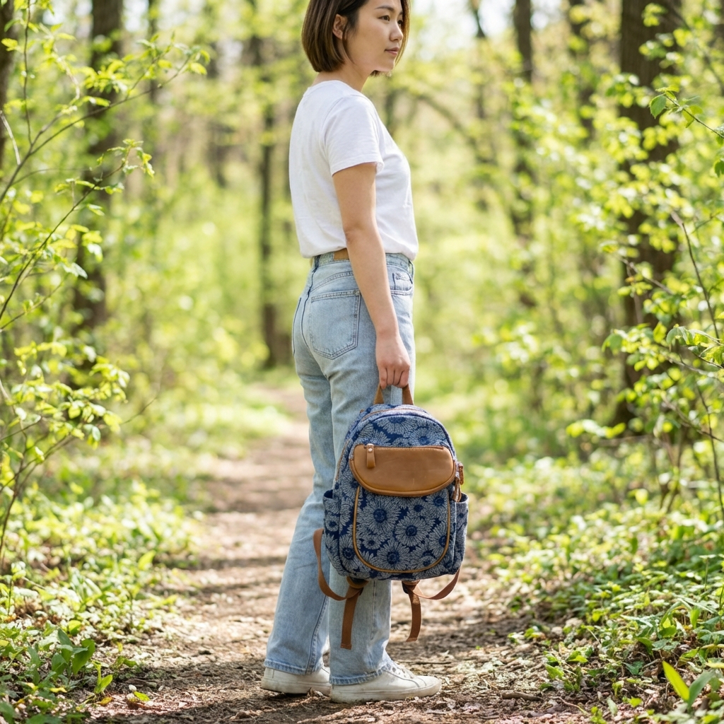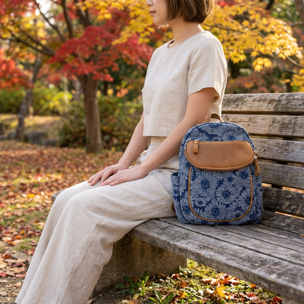 和風織紋多口袋後背包(11 吋)織藍色 K1425