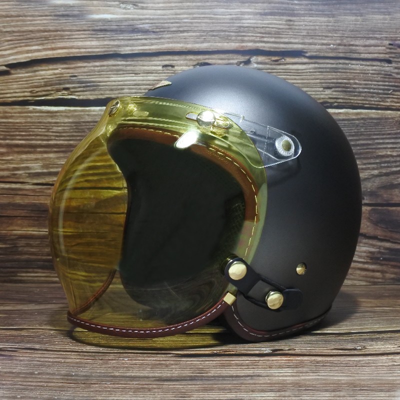 Feture Helmet 飛喬 咖啡皮革TOP_PP釦式風鏡 - 黃色泡泡鏡