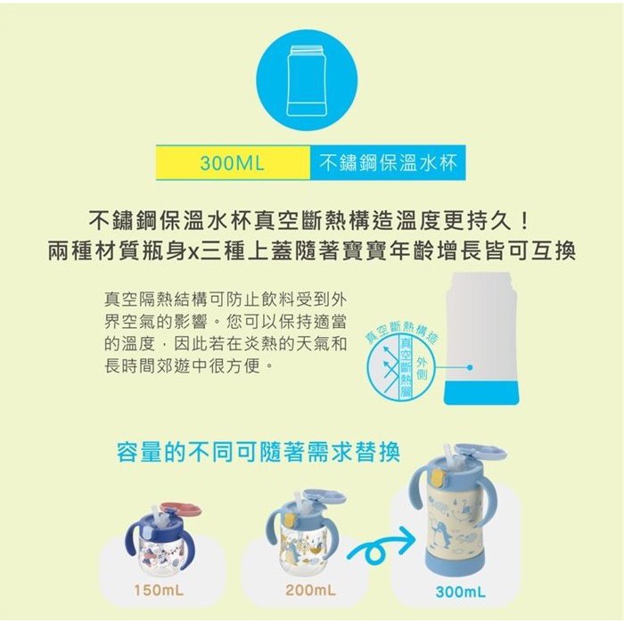 Richell利其爾花間鹿不鏽鋼吸管保溫杯300ML(4945680201308花間鹿)+吸管水杯150ML 890元