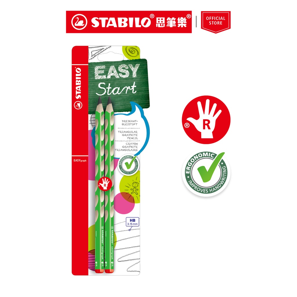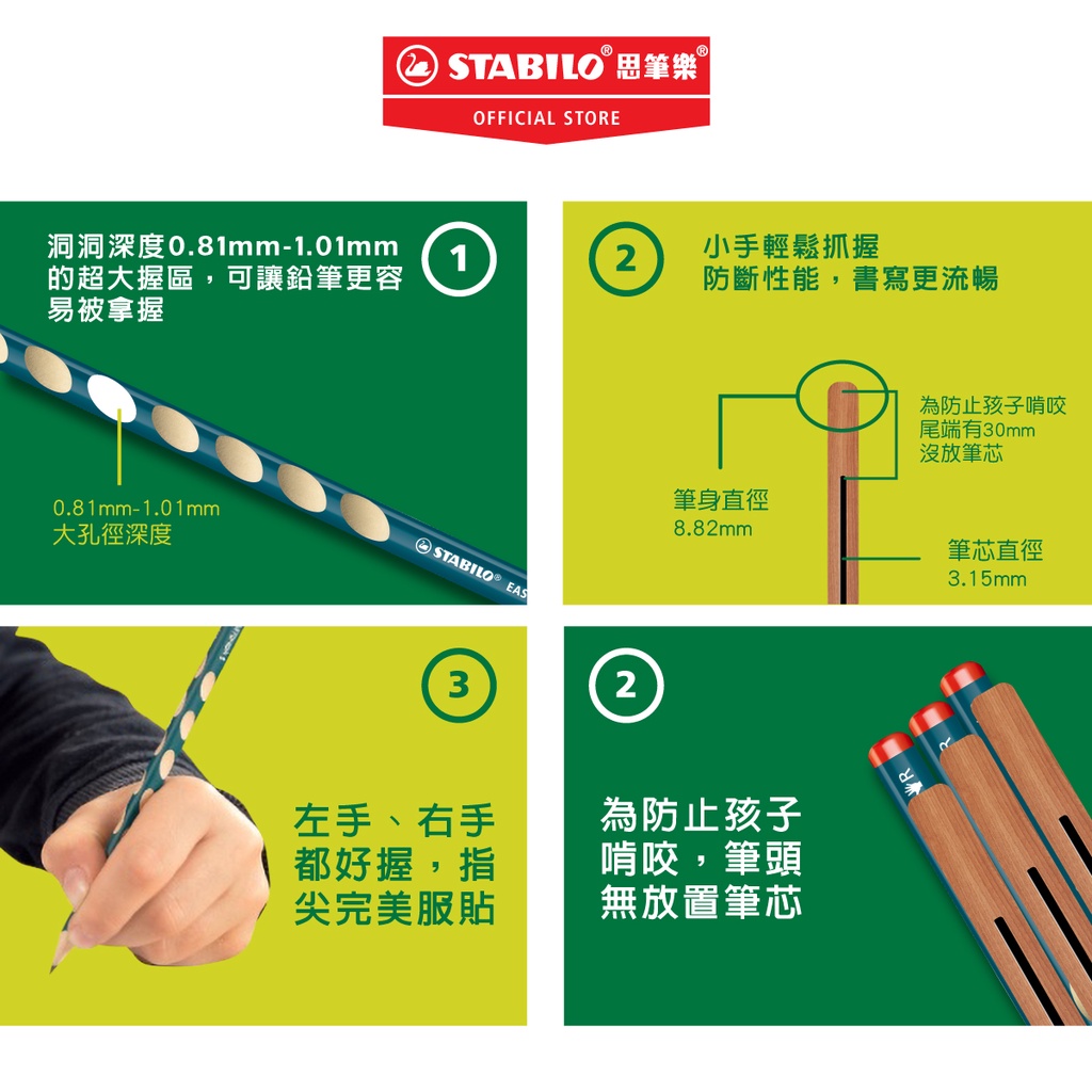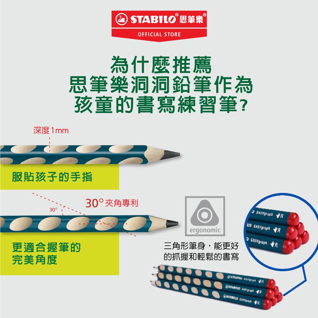 【STABILO思筆樂】 EASYgraph 思筆樂洞洞鉛筆 2入 人體工學 正確握姿 第一支寫字筆 三角粗鉛筆 送筆蓋