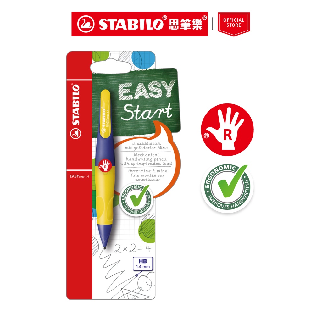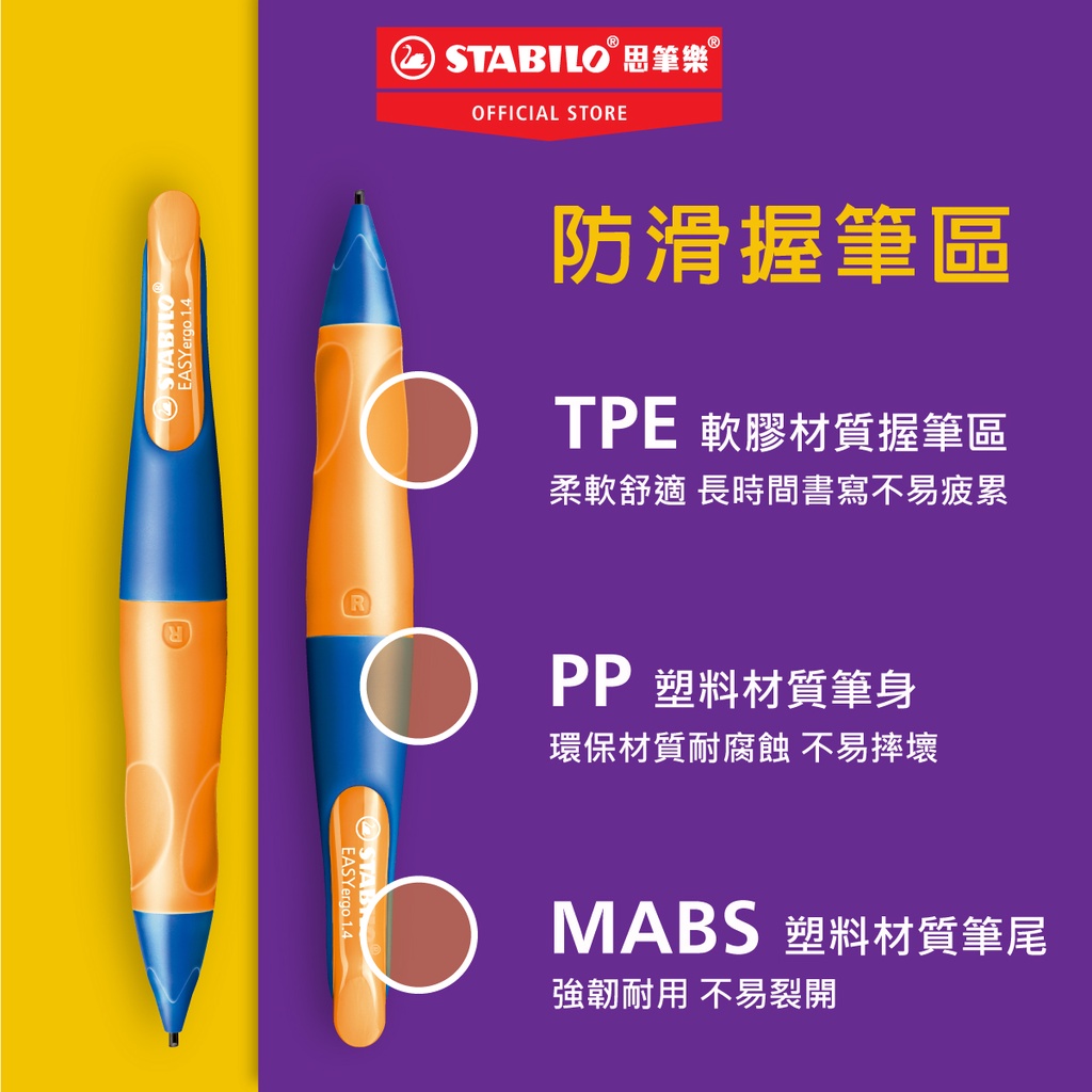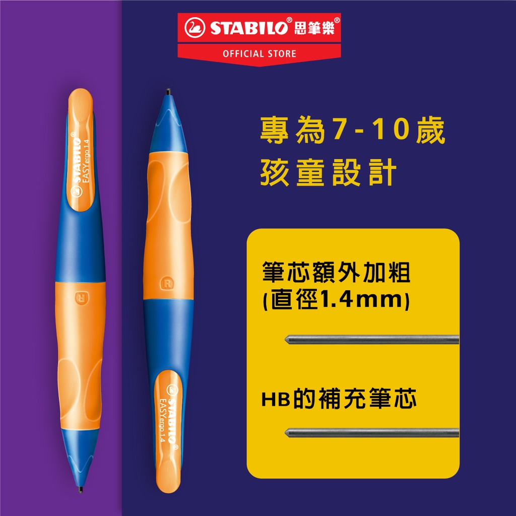 【STABILO思筆樂】 EASYergo 1.4mm胖胖鉛 粗自動鉛筆 學習筆 正確握筆 HB 左/右手適用 人體工學