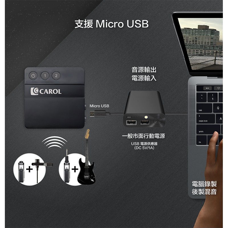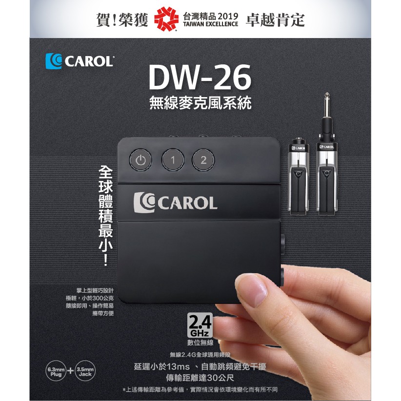 【CAROL】輕巧掌上型2.4G數位無線麥克風系統 DW-26 C+I (支援電容麥克風、電子樂器)
