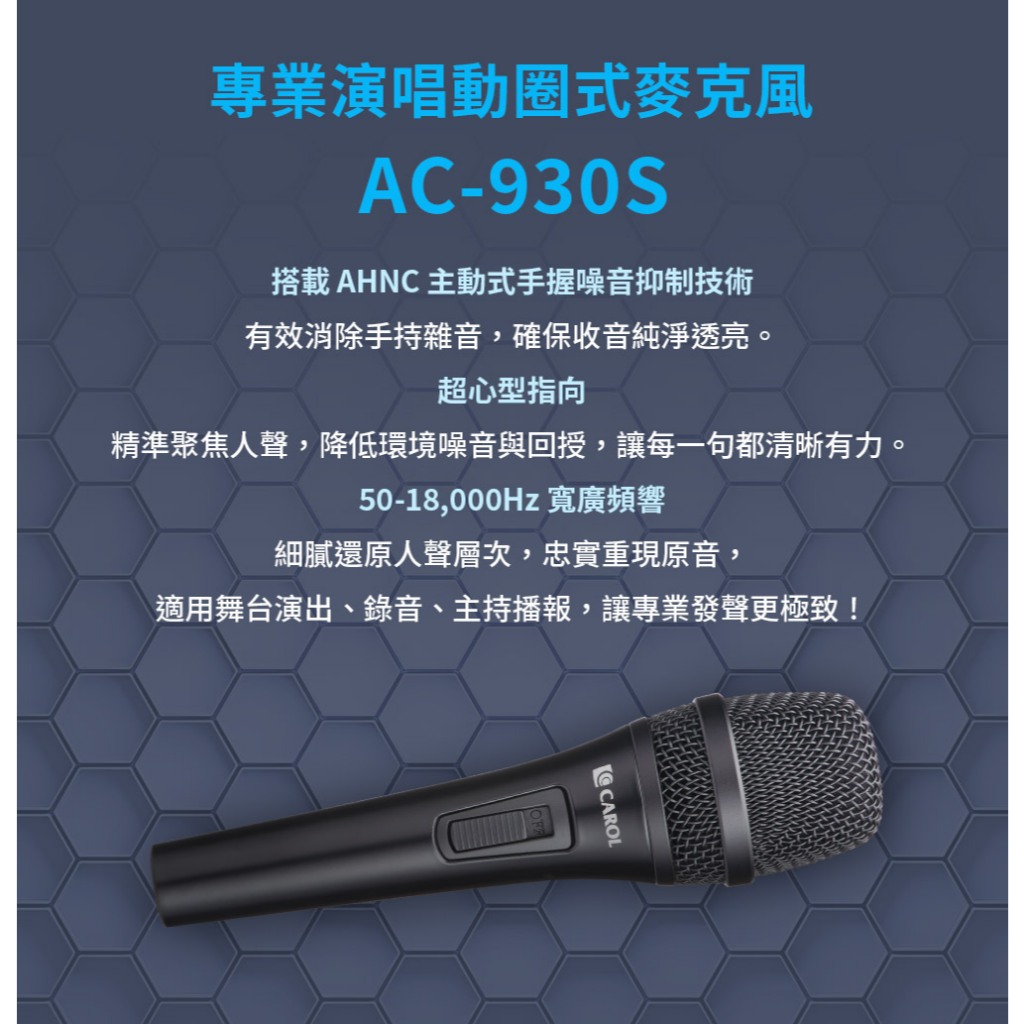 【CAROL】專業演唱舞台款 主動式降手握雜音動圈式麥克風 AC-930
