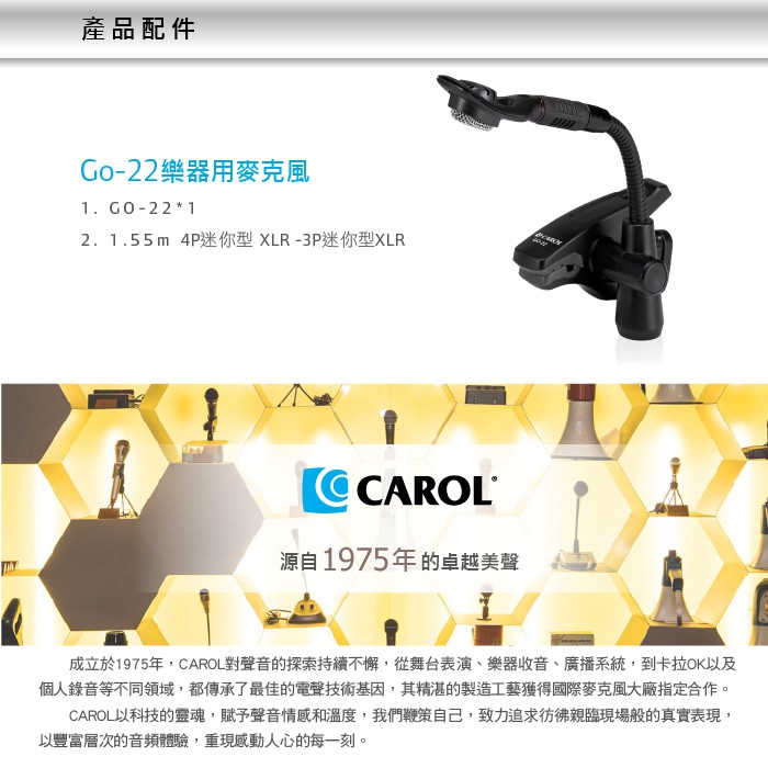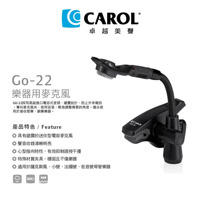 【CAROL】樂器用麥克風GO-22 適用薩克斯風等管銅樂器收音,電容式